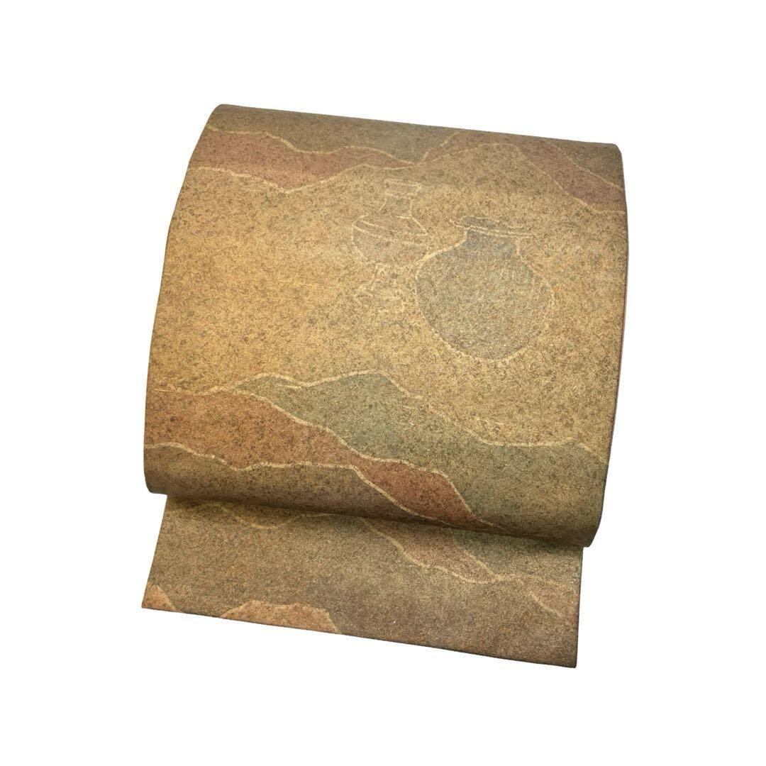袋帯 牛首紬 石川県指定無形文化財 壺柄 手織り 枇杷茶色 O-4094 着物 きもの kimono 和服 和装 中古 リサイクル着物 【送料無料】