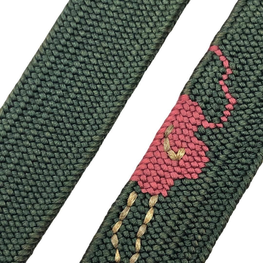 藍海松茶色のお色味に花模様の柄裄がデザインされた高麗組の素敵なお品でございます。