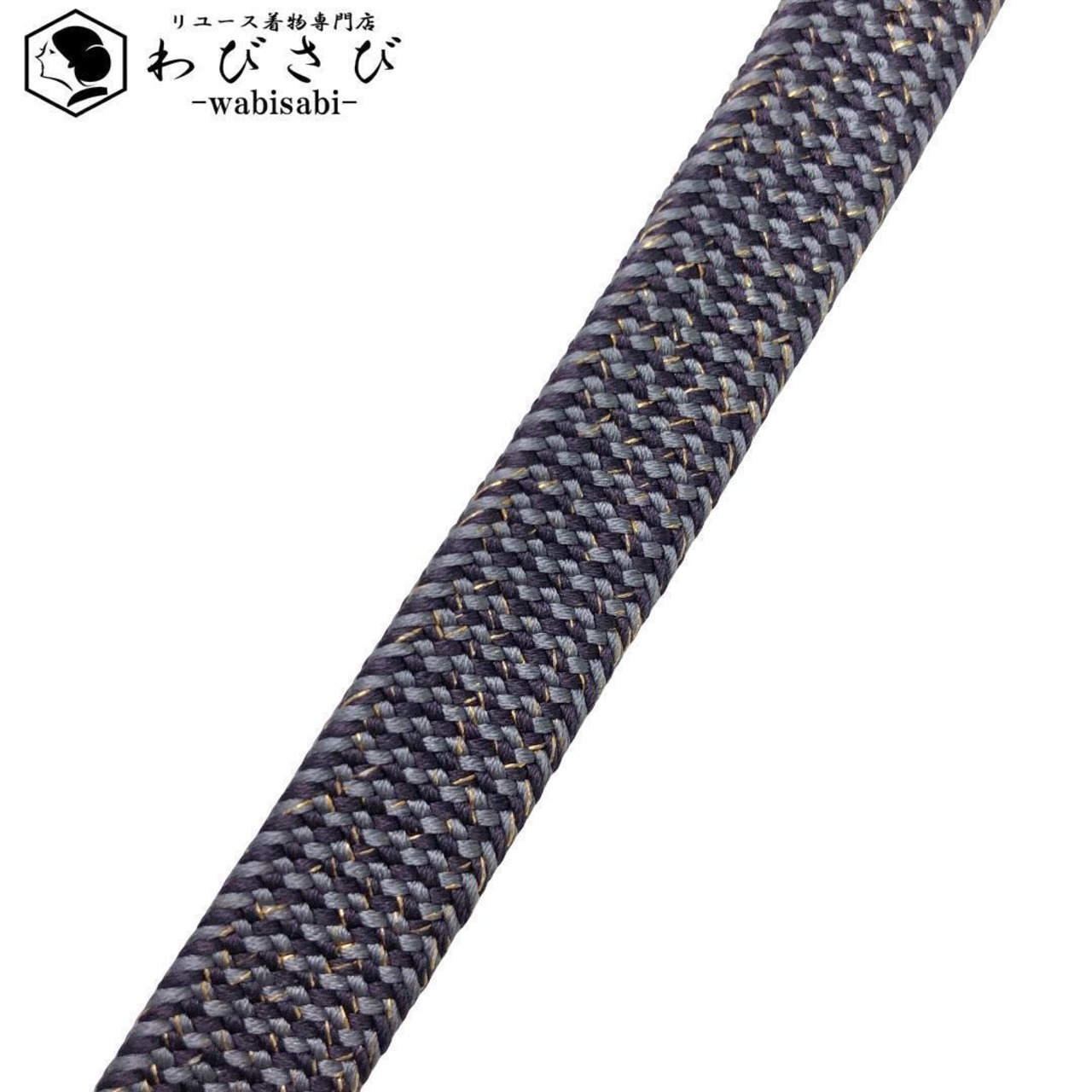 滅紫色ベースのお色味に小田巻が素敵な平組紐のお品でございます。