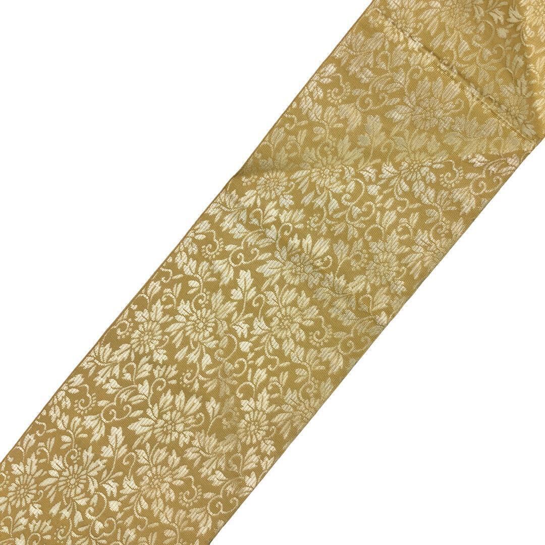 藁色のお色味に花唐草模様の柄裄がデザインされた雰囲気の良い素敵なお品でございます。