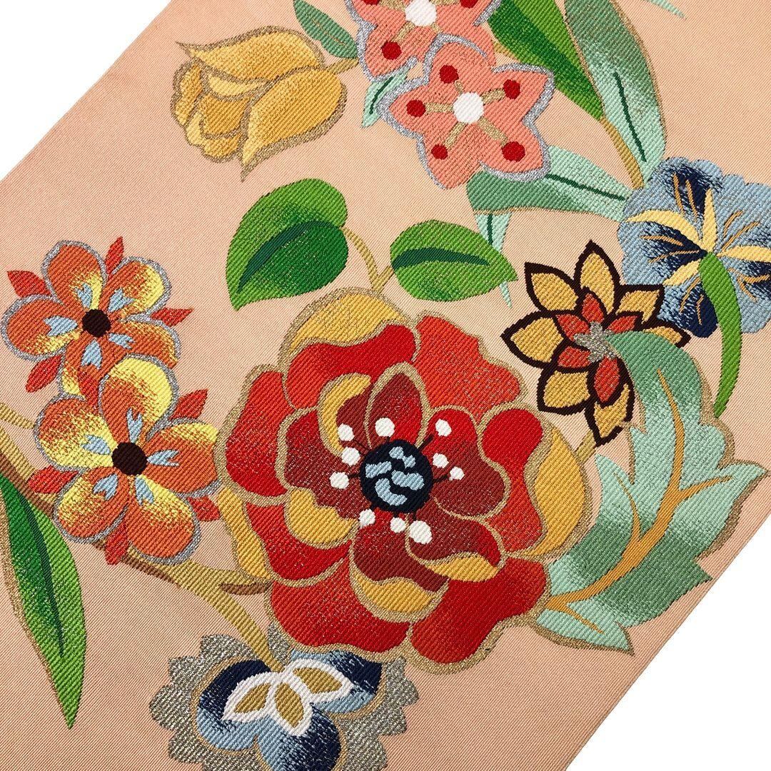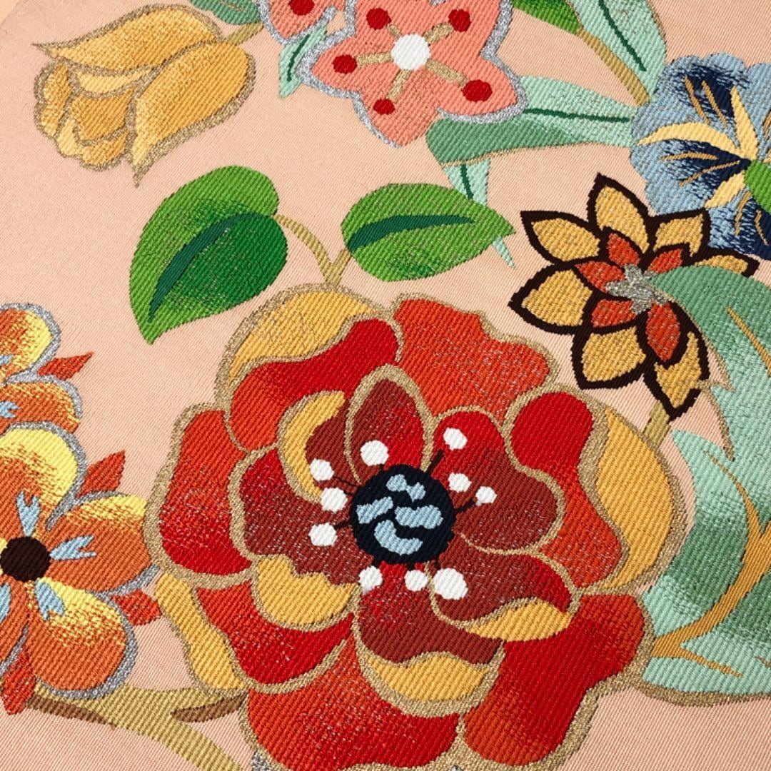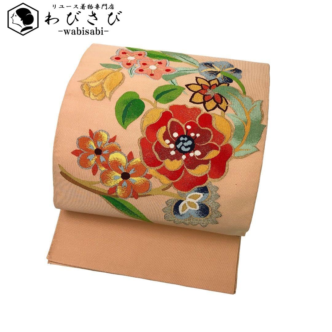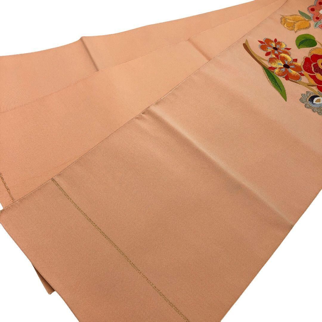 薄大和柿色のお色味に色鮮やかな花模様の柄裄がデザインされた素敵なお品でございます。