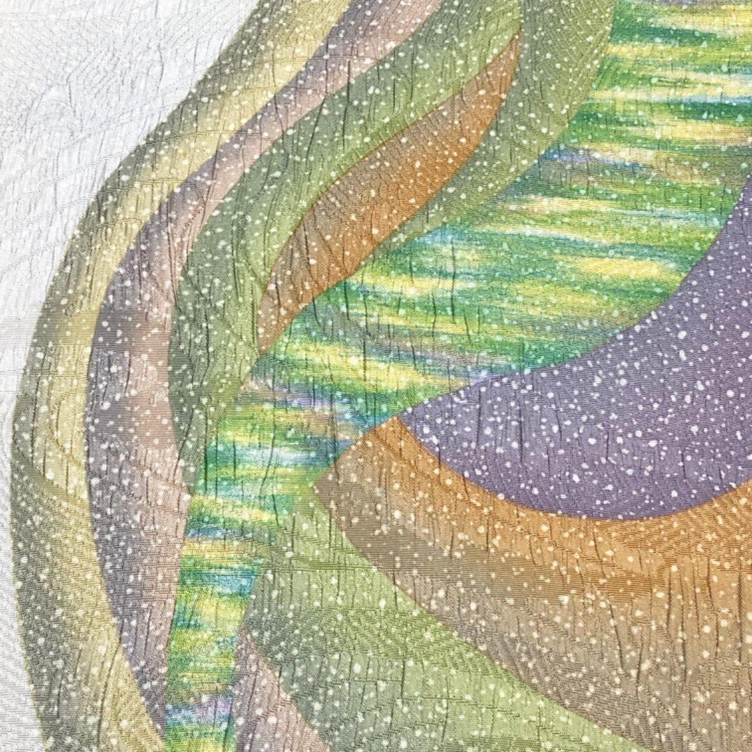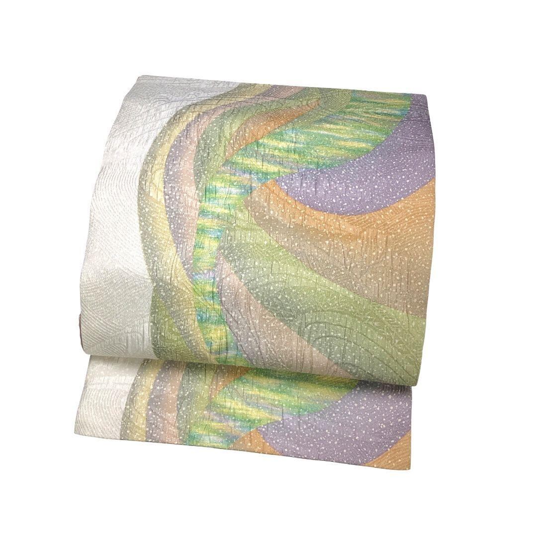 袋帯 鵬翔 博多織唯一の後染 抽象模様 乳白色 O-5456 着物 きもの kimono 和服 和装 中古 リサイクル着物 【送料無料】
