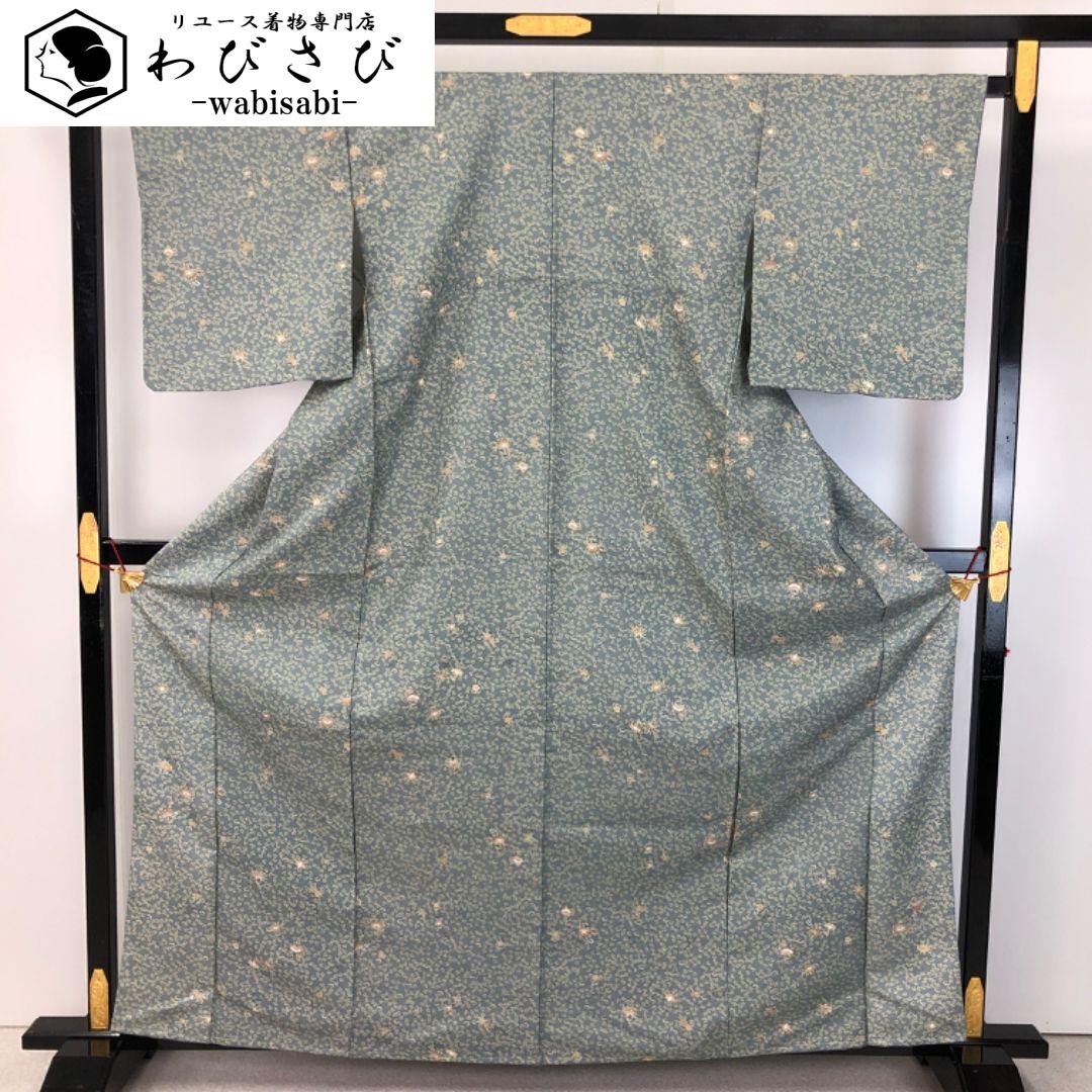 小紋 花模様 沈香茶色 しつけ糸 K-5248 着物 きもの kimono 和服 和装 中古 リサイクル着物 【送料無料】