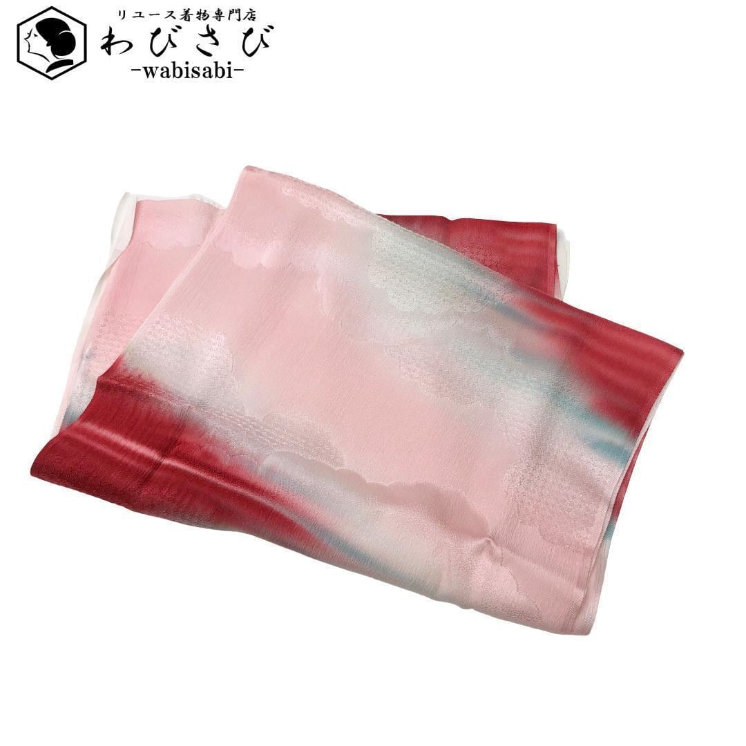 乙女色ベースのお色味に暈し模様、雲柄がデザインされた素敵なお品でございます。