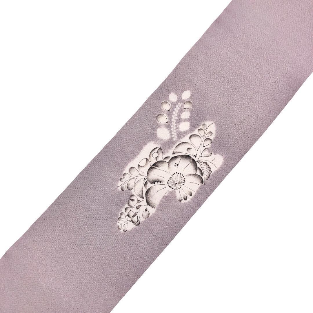 霞色ベースのお色味の縮緬地に雰囲気の良い西洞院辻が花がデザインされた素敵な柄裄のお品でございます。