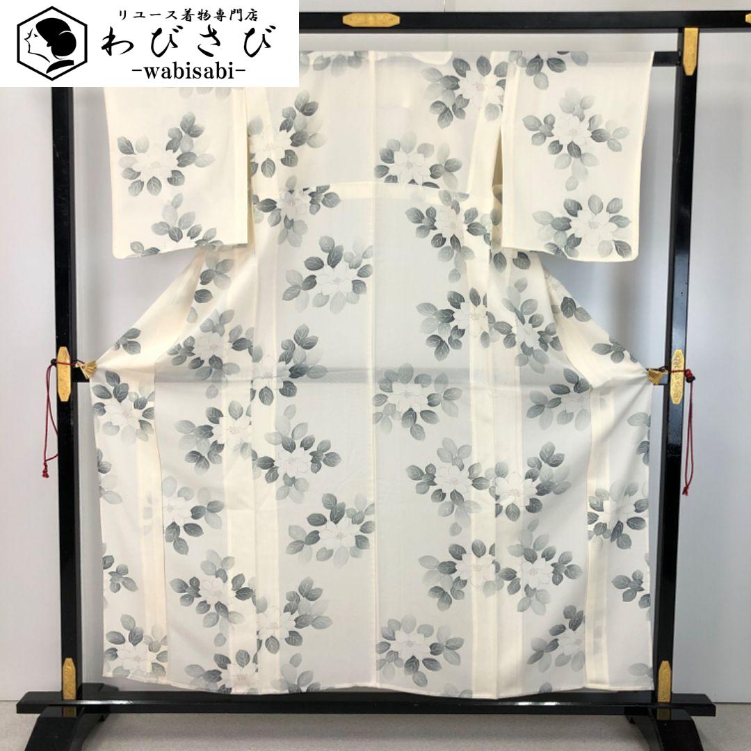 夏着物 小紋 絽 花模様 乳白色 K-5253 着物 きもの kimono 和服 和装 中古 リサイクル着物 【送料無料】