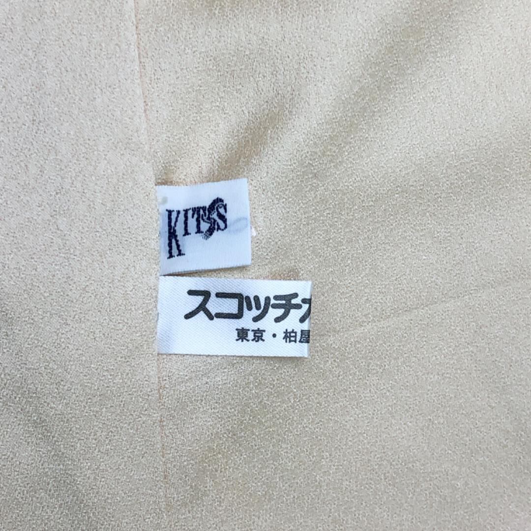 麹色のお色味に刺繍、金駒が使われた美しい花模様、紅葉、松葉などの柄裄がデザインされた素敵なお品でございます。