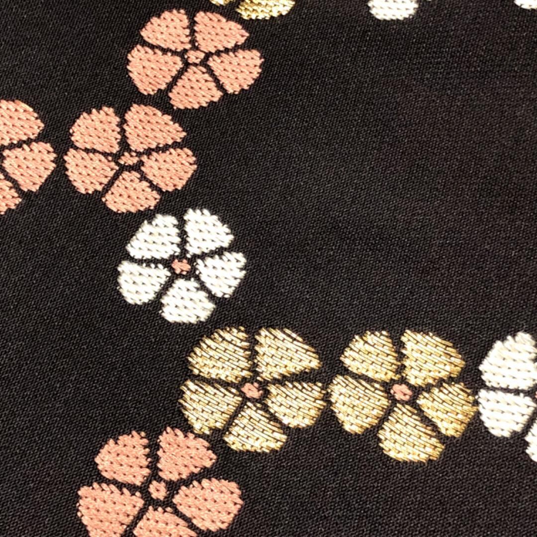 黒鼠色のお色味に花の亀甲模様がデザインされた素敵な柄裄のお品でございます。
