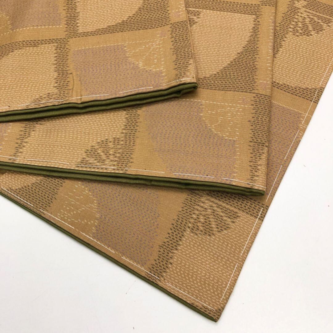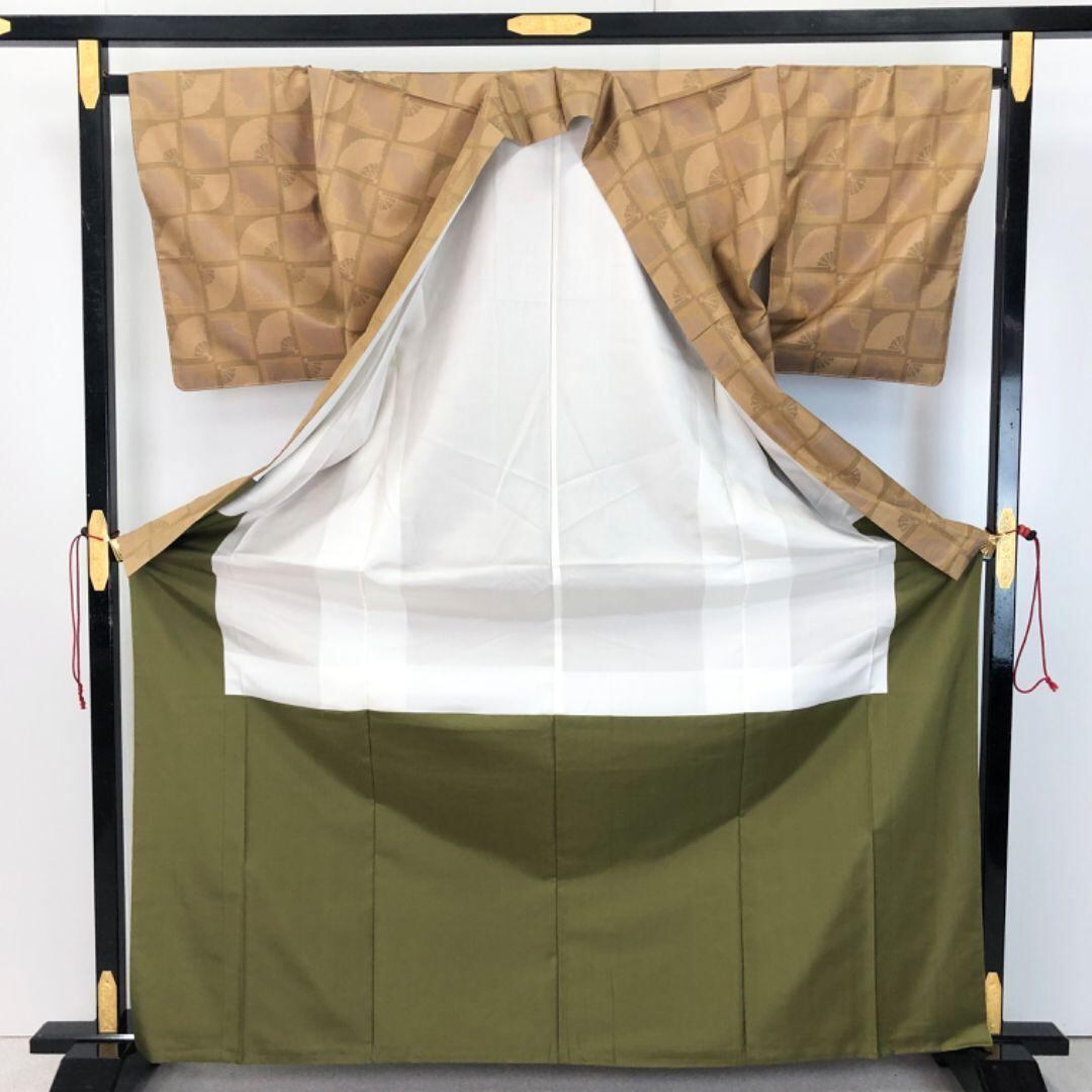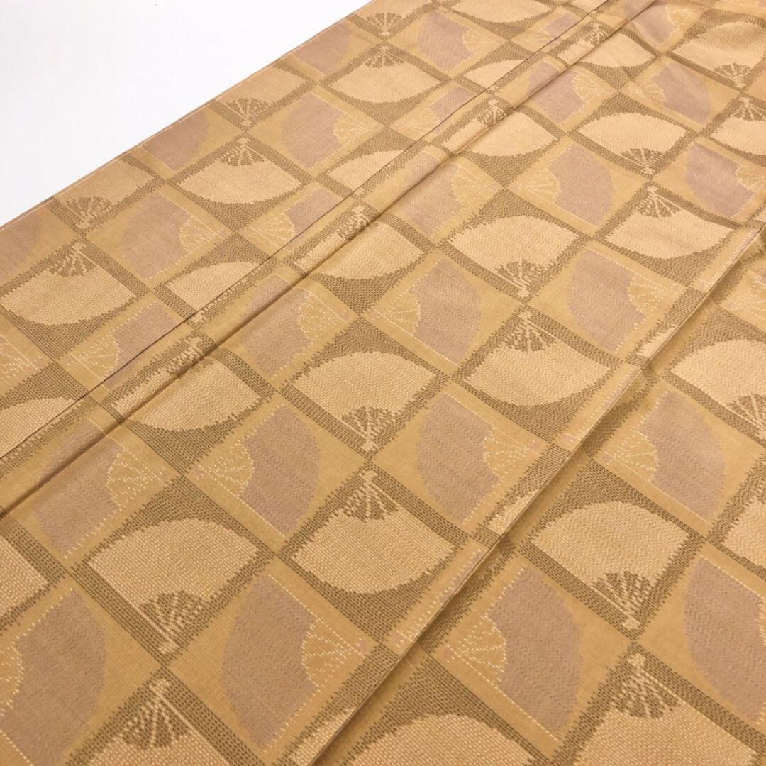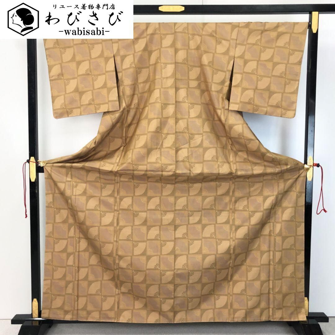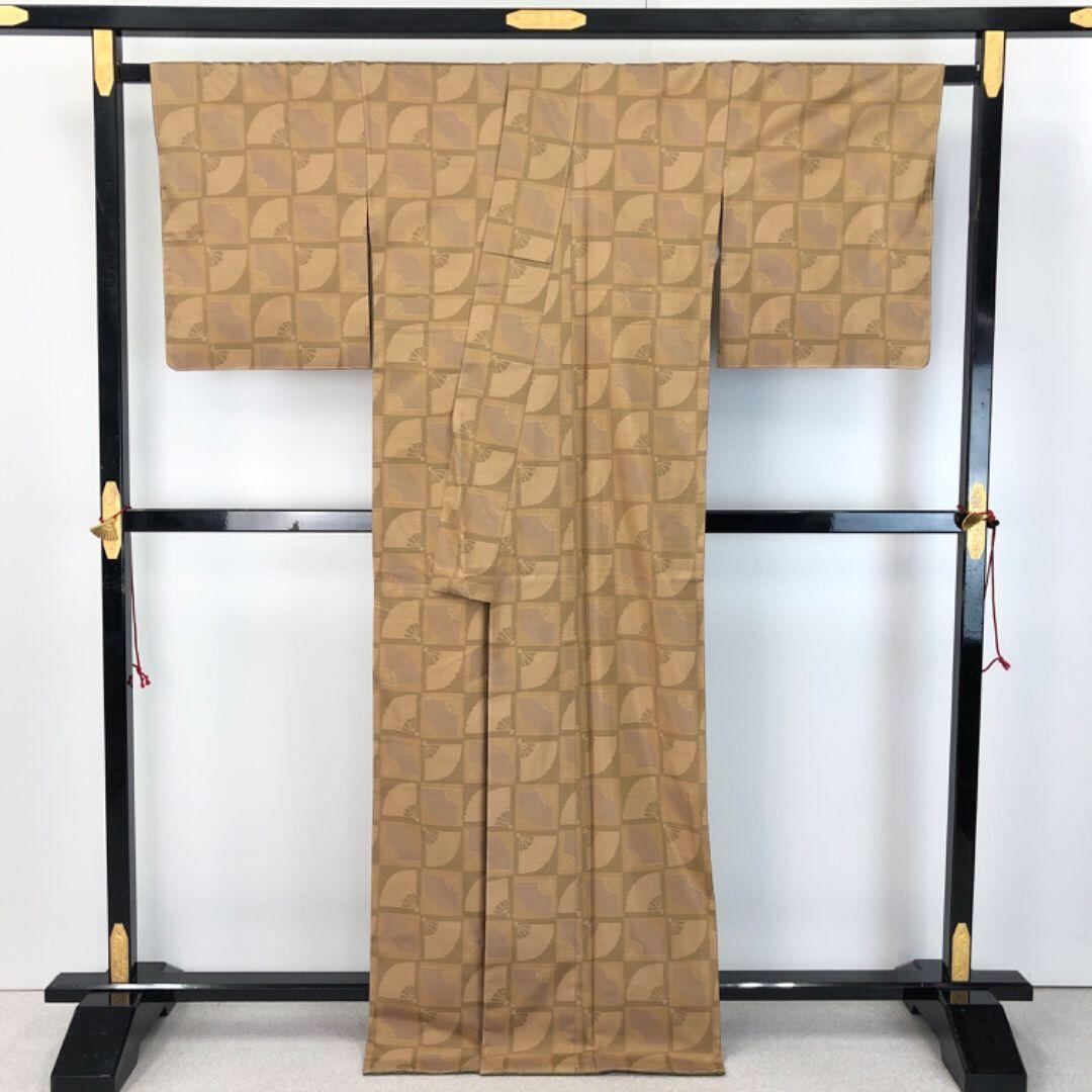 麦藁色のお色味に扇子柄がデザインされた雰囲気の良い素敵な柄裄のお品でございます。