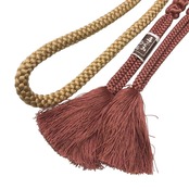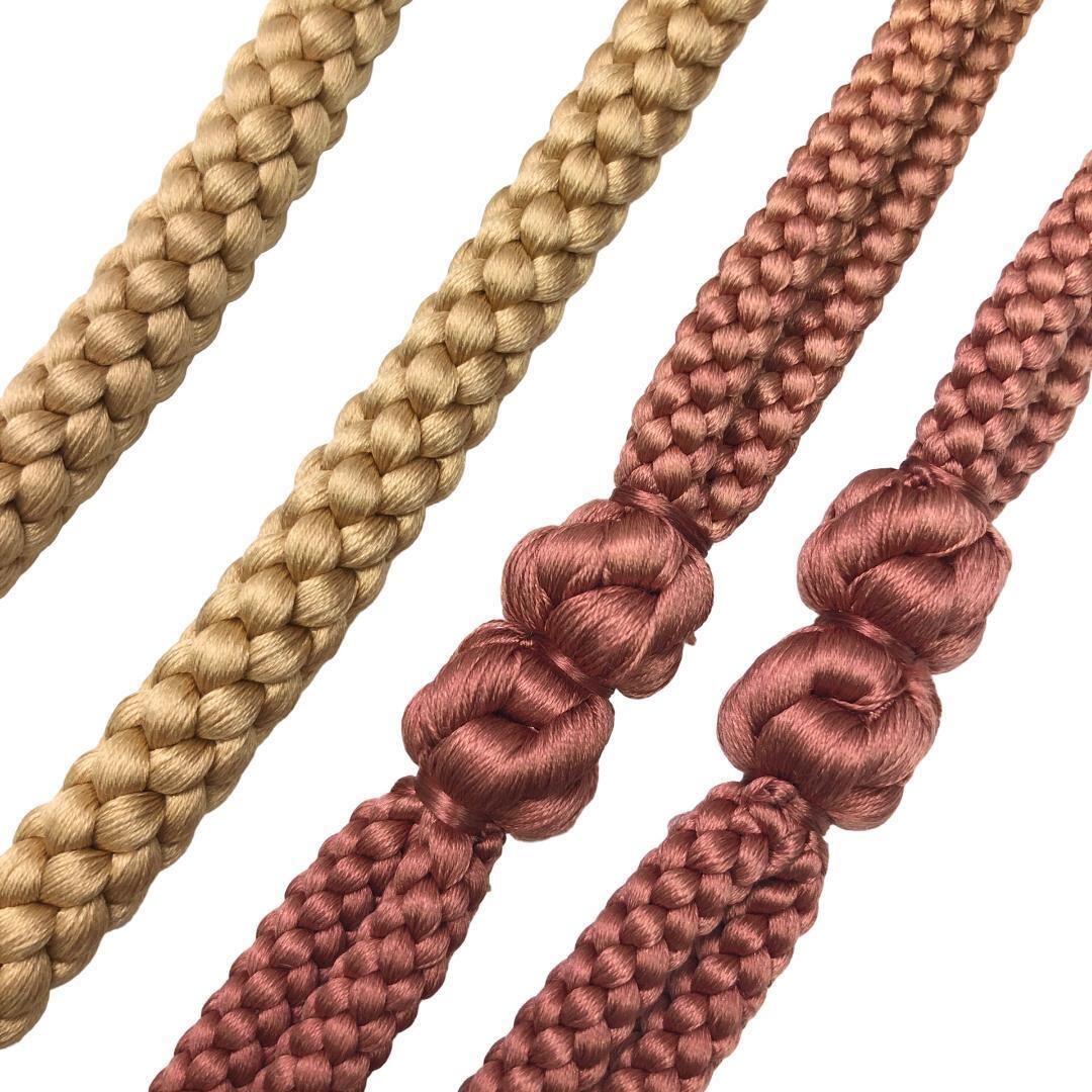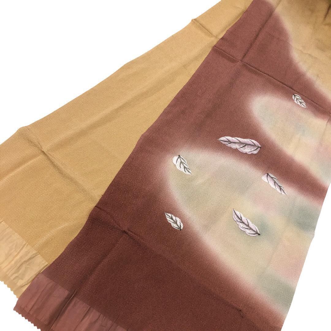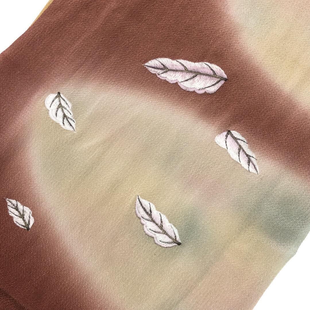 麦藁色ベースのお色味に刺繍で葉模様がデザインされた帯揚げ、丸組紐の素敵なお品でございます。