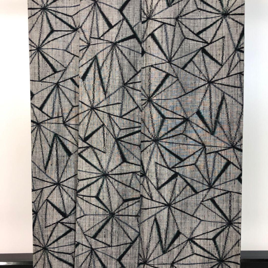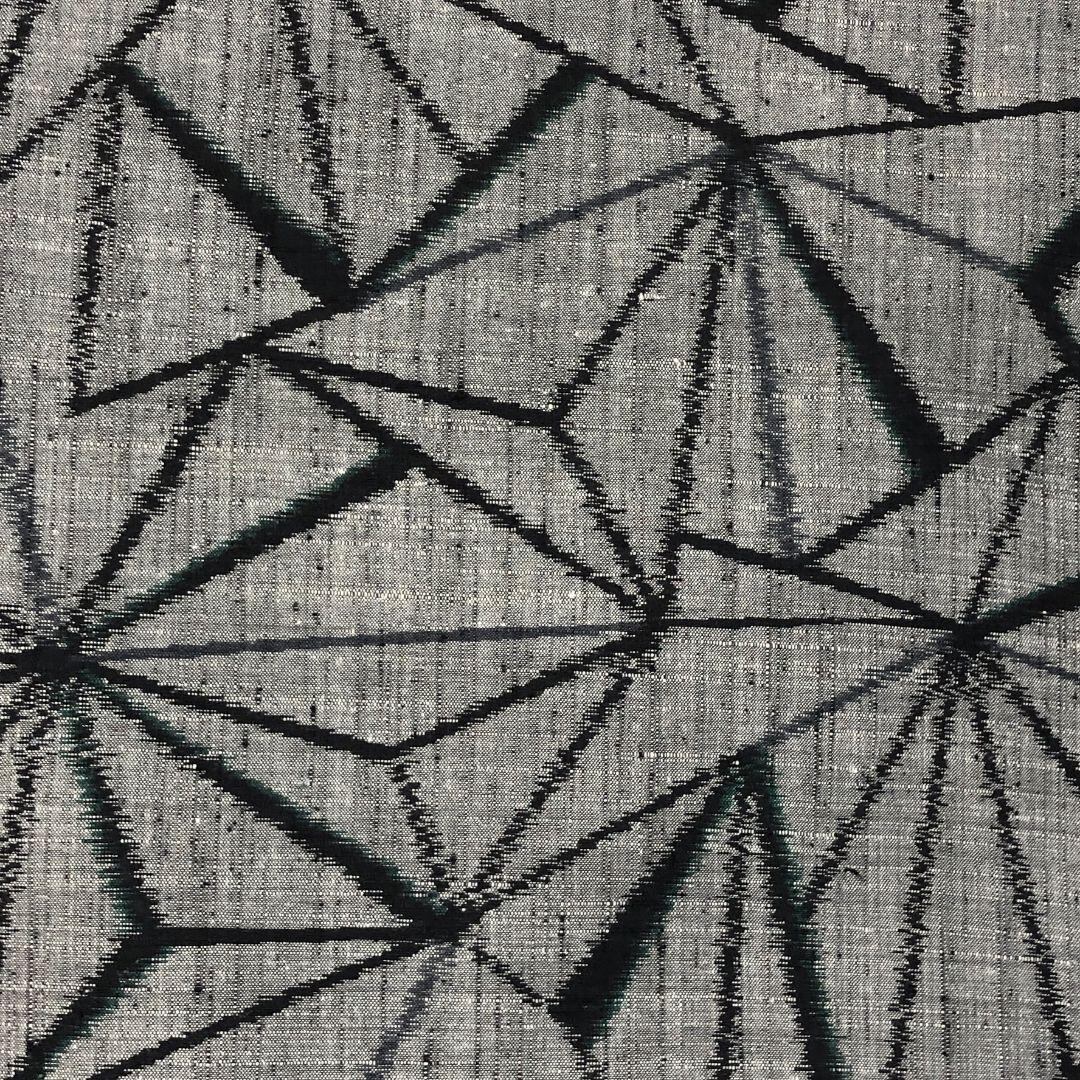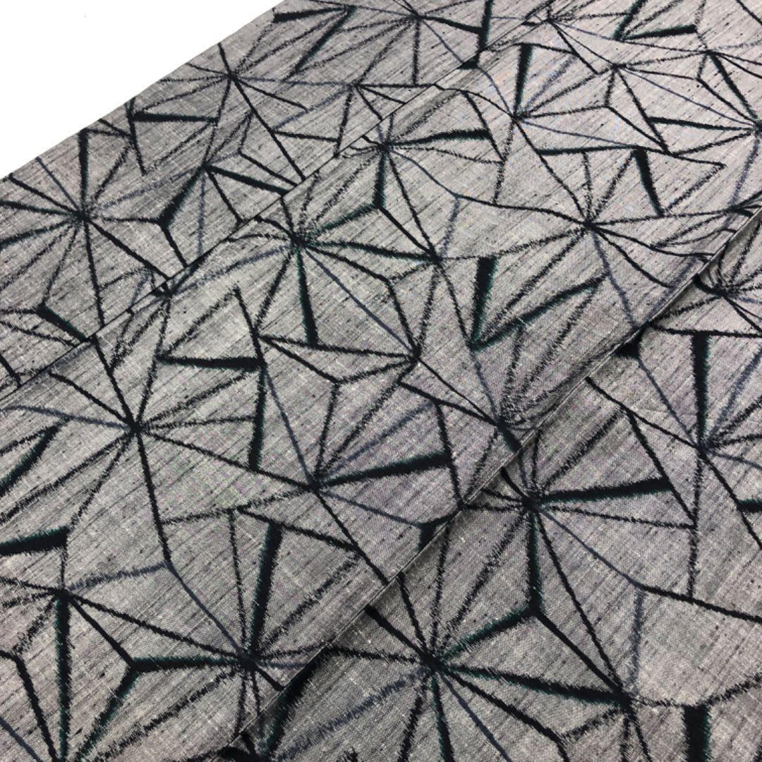 濃灰色のお色味に幾何学模様がデザインされた素敵な柄裄のお品でございます。