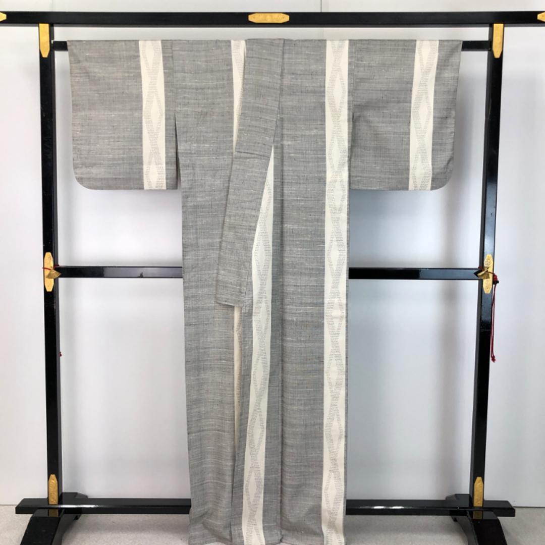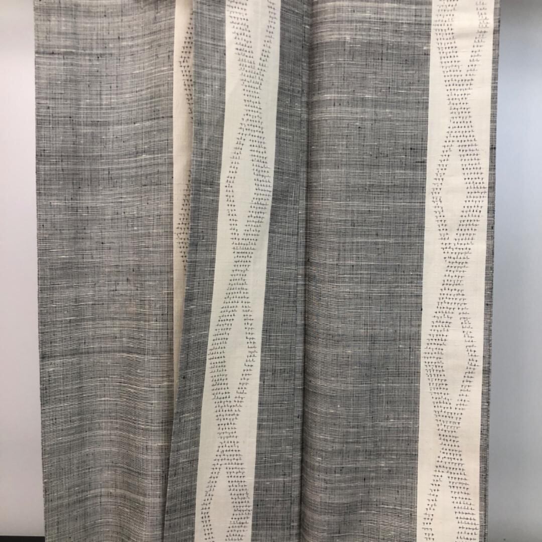 灰色ベースのお色味に縦縞、織模様がデザインされた素敵なお品でございます。