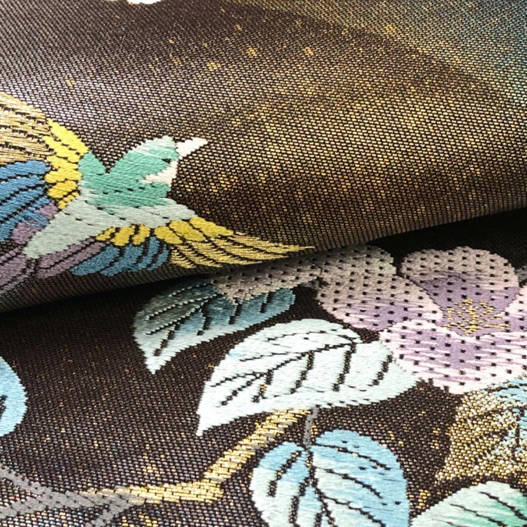 袋帯 花ひとえ 花葉模様に鳥 金銀糸 憲房色 O-5476 着物 きもの kimono 和服 和装 中古 リサイクル着物 【送料無料】