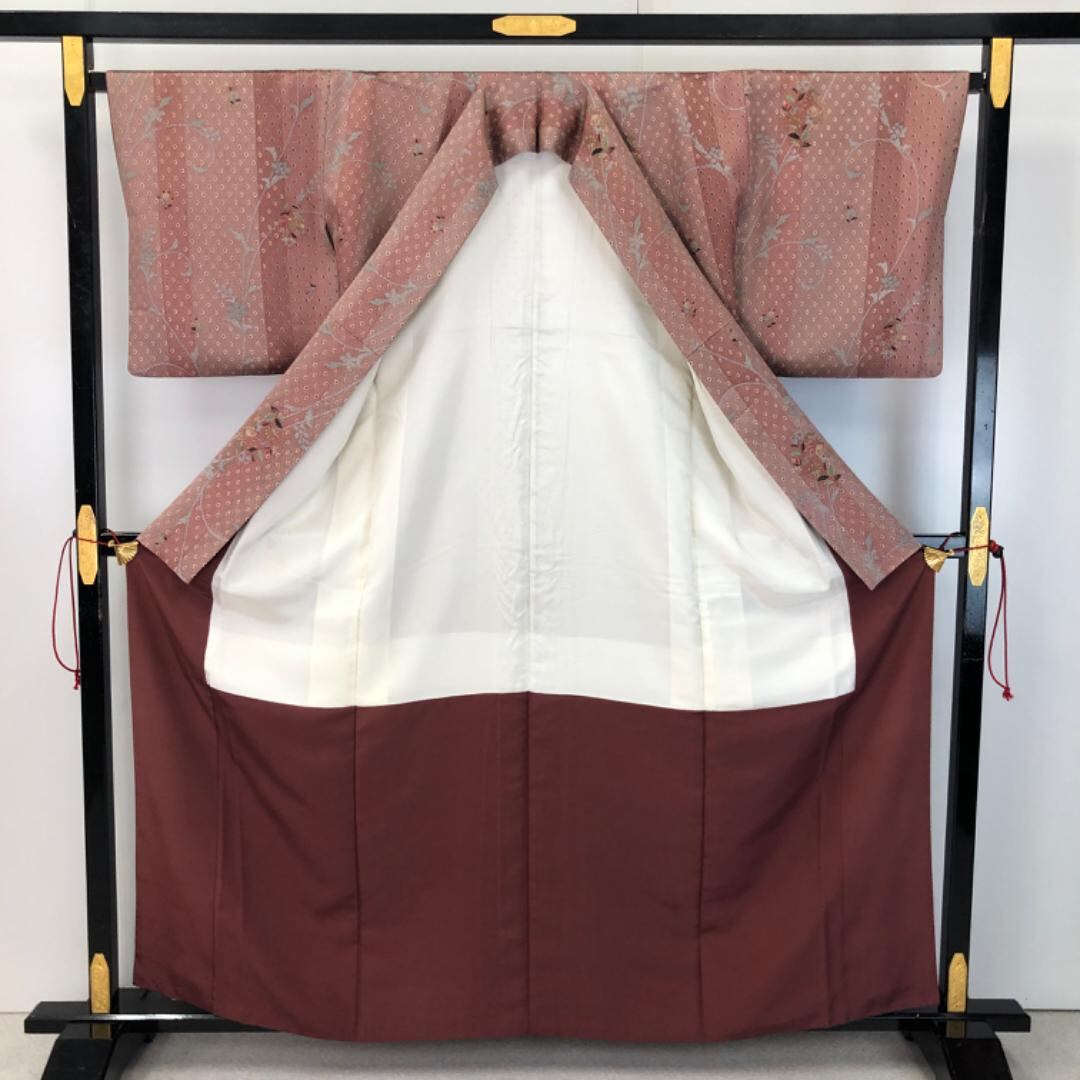 小紋 縦縞模様 花柄 浅蘇芳色 トールサイズ K-5302 着物 きもの kimono 和服 和装 中古 リサイクル着物 【送料無料】