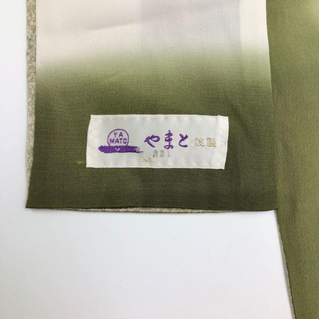 付下げ 刺繍 紅葉に松葉 花模様 叩き染 利休色 しつけ糸 K-5273 着物 きもの kimono 和服 和装 中古 リサイクル着物 【送料無料】