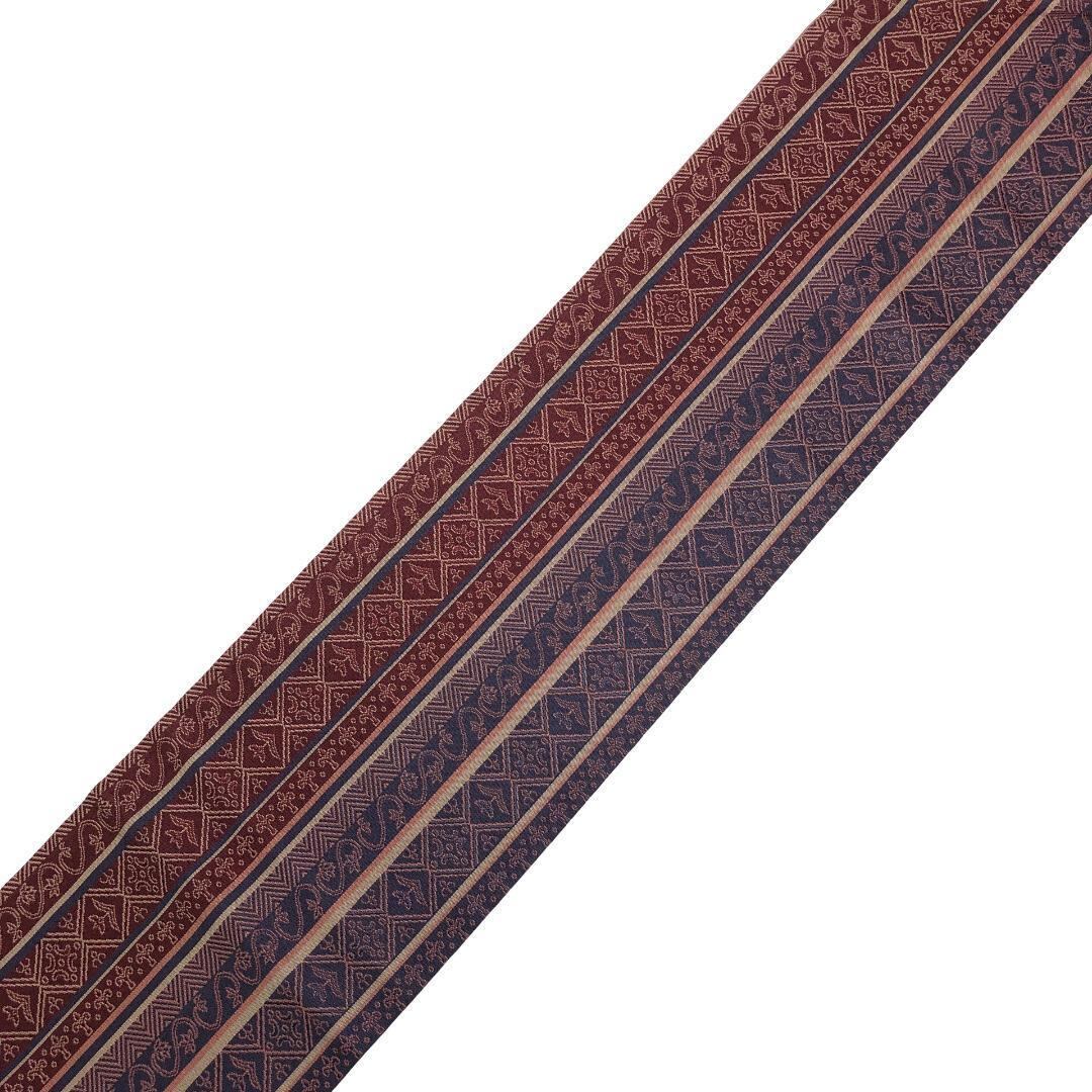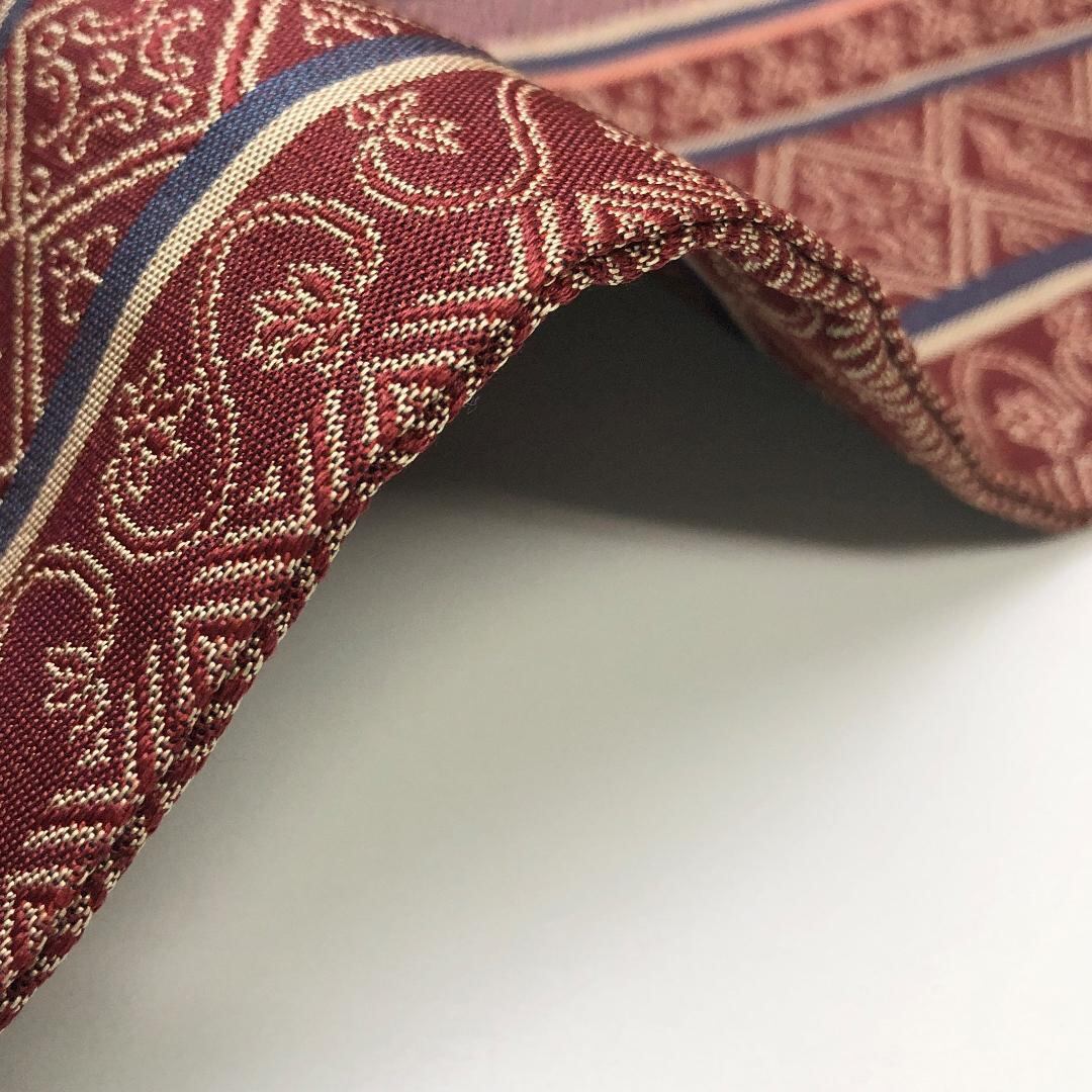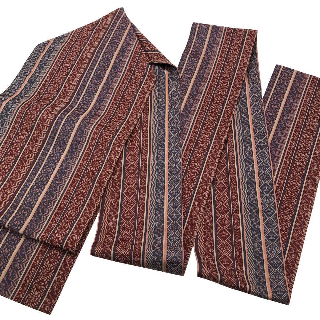名古屋帯 縦縞花唐草模様 深蘇芳色 O-5486 着物 きもの kimono 和服 和装 中古 リサイクル着物 【送料無料】