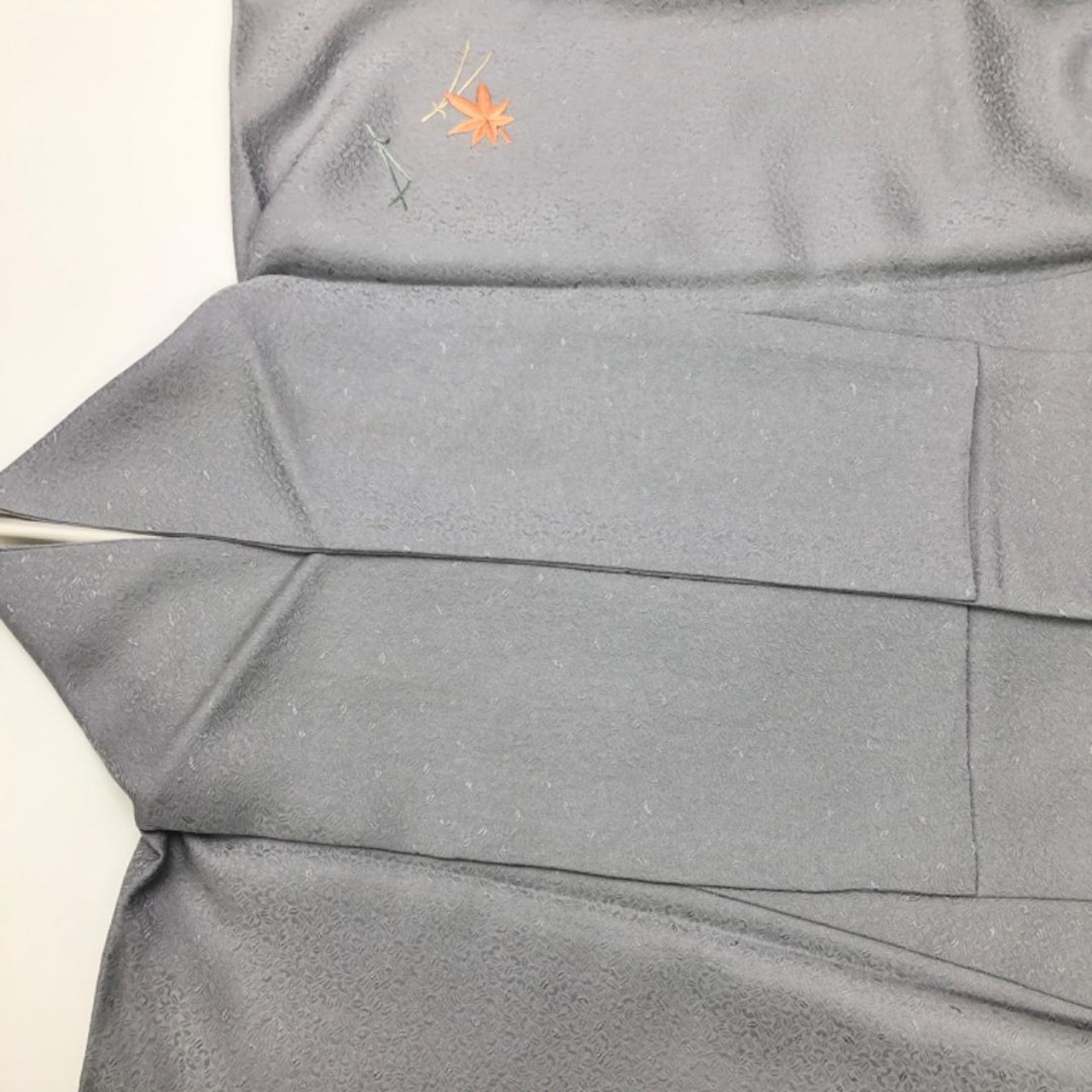 薄鈍色のお色味に紅葉、銀杏に鹿子絞りの柄裄がデザインされた素敵なお品でございます。