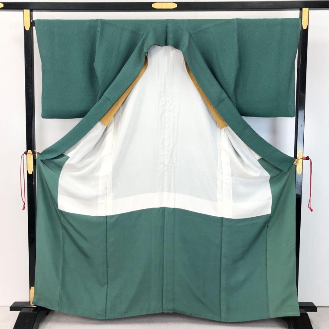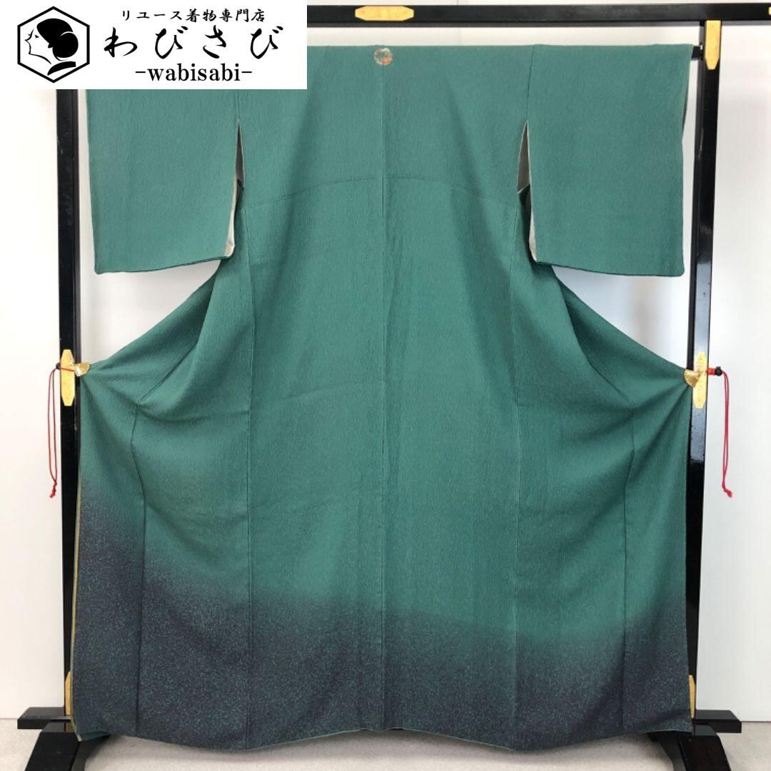 付下げ 叩き染 暈し 萌葱色 縮緬 K-5293 着物 きもの kimono 和服 和装 中古 リサイクル着物 【送料無料】