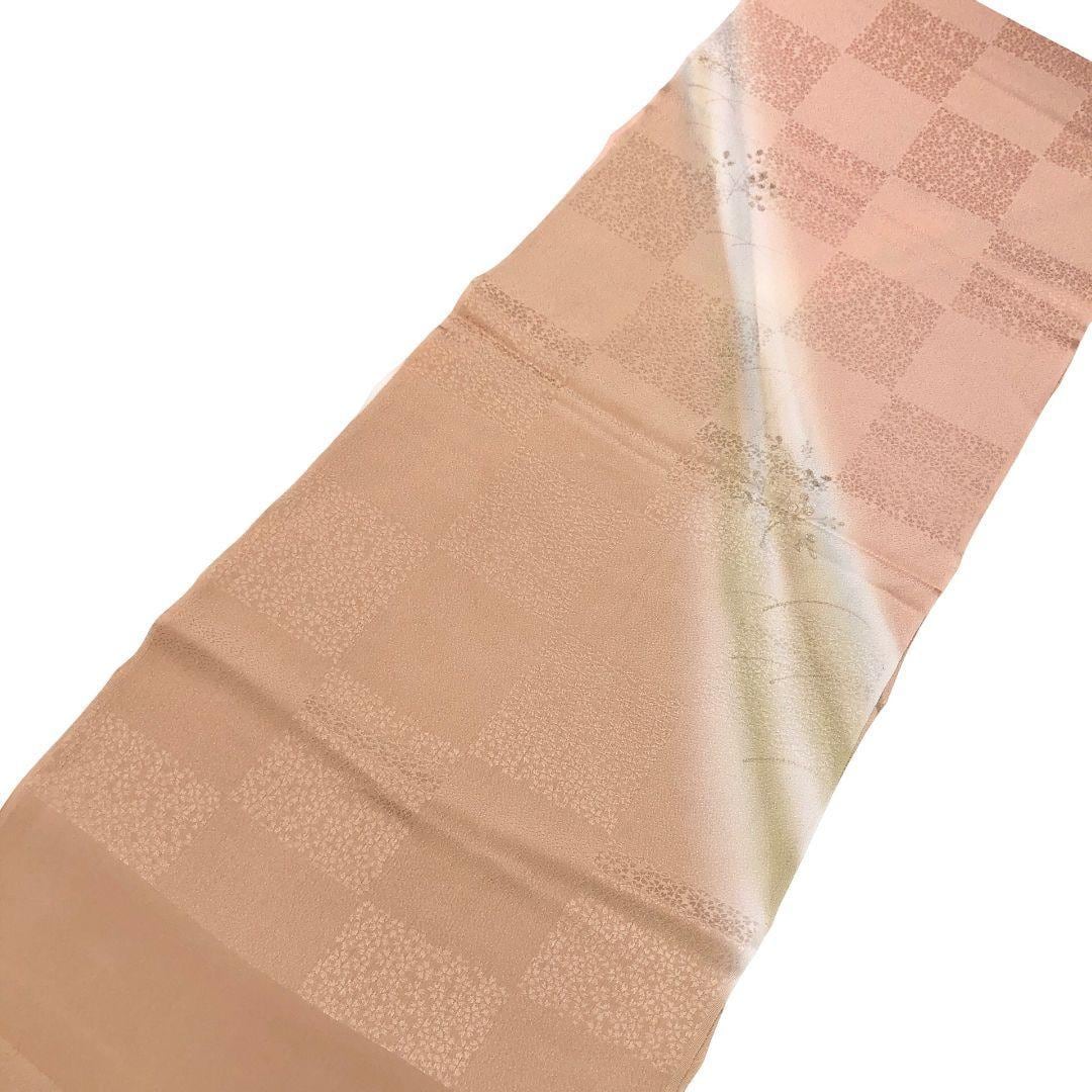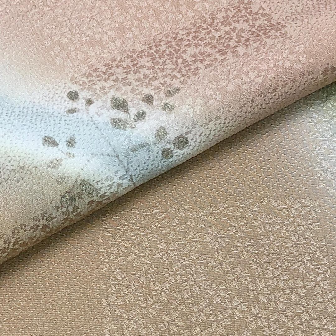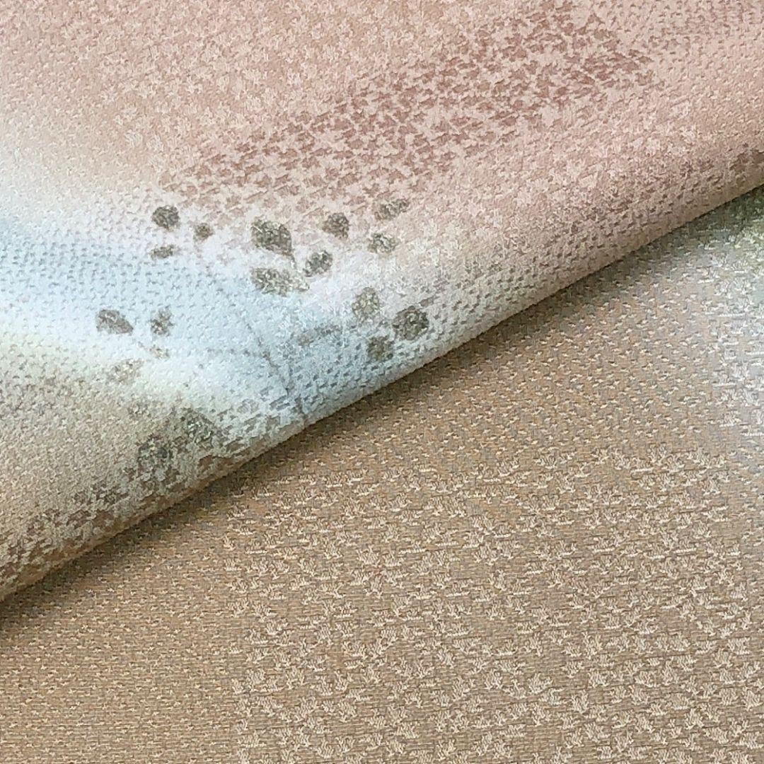 薄香色ベースのお色味に芝、枝葉模様がデザインされた素敵なお品でございます。