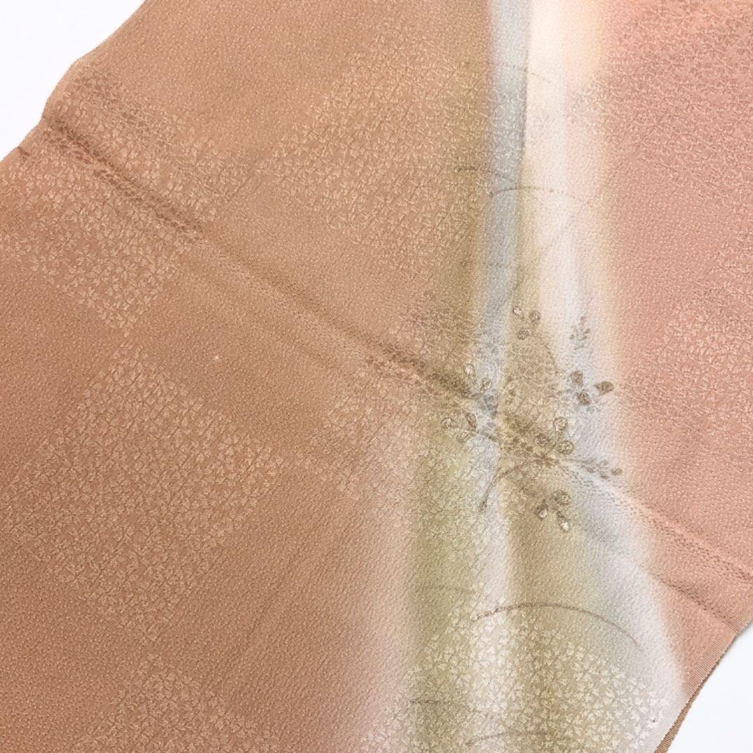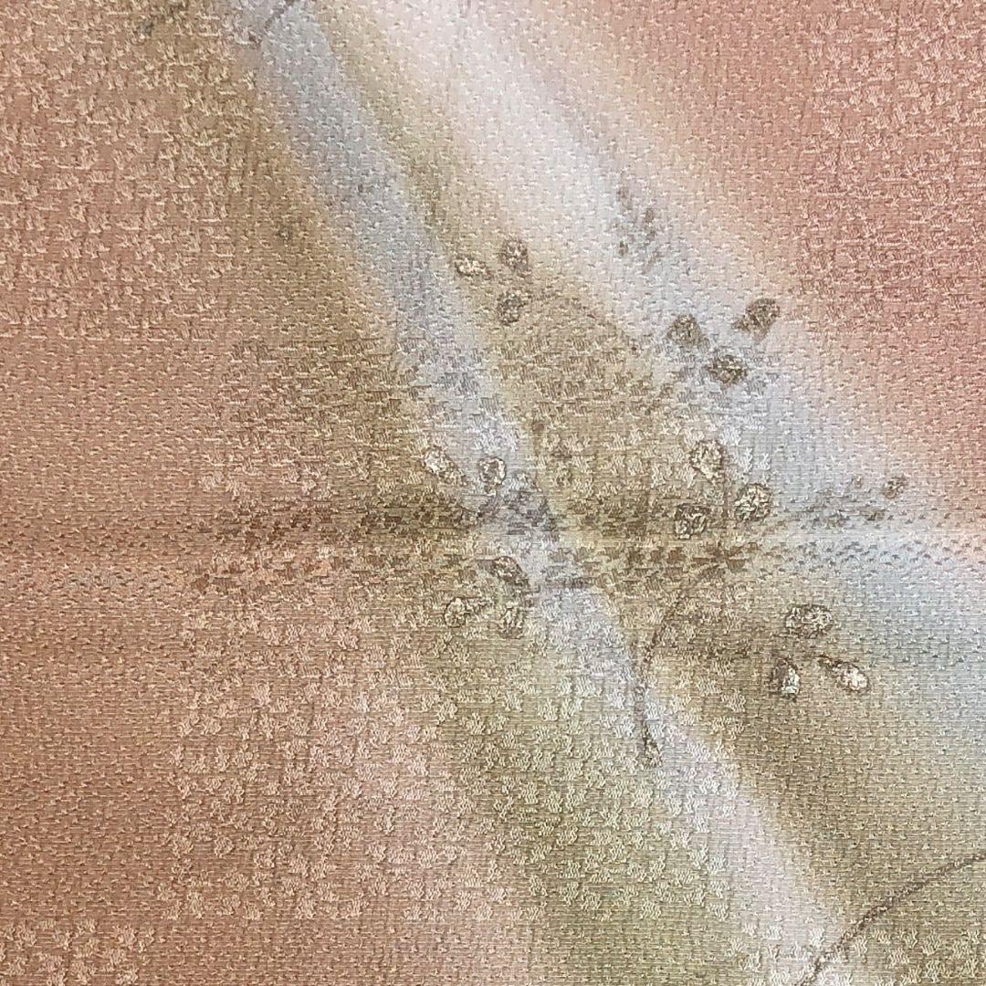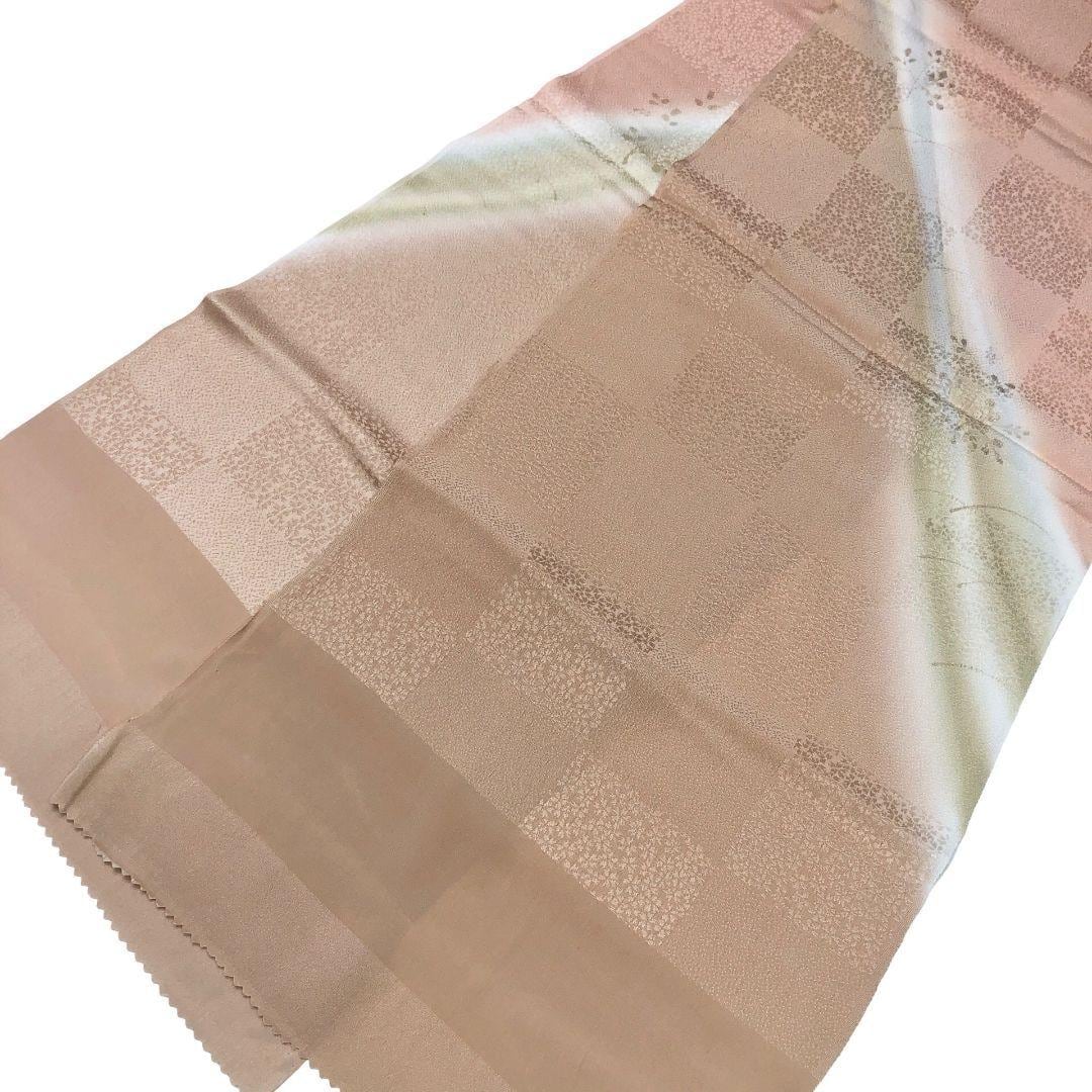 薄香色ベースのお色味に芝、枝葉模様がデザインされた素敵なお品でございます。