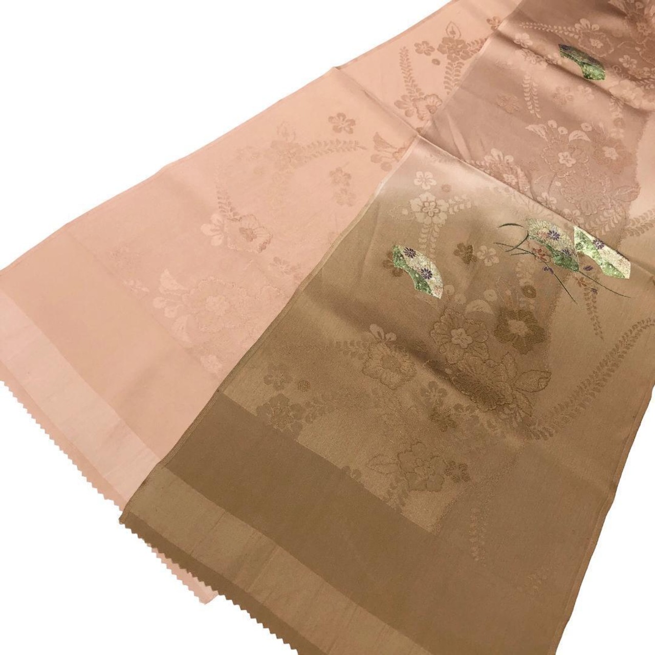 香色ベースのグラデーションのお色味に地紙に花模様がデザインされた素敵なお品でございます。