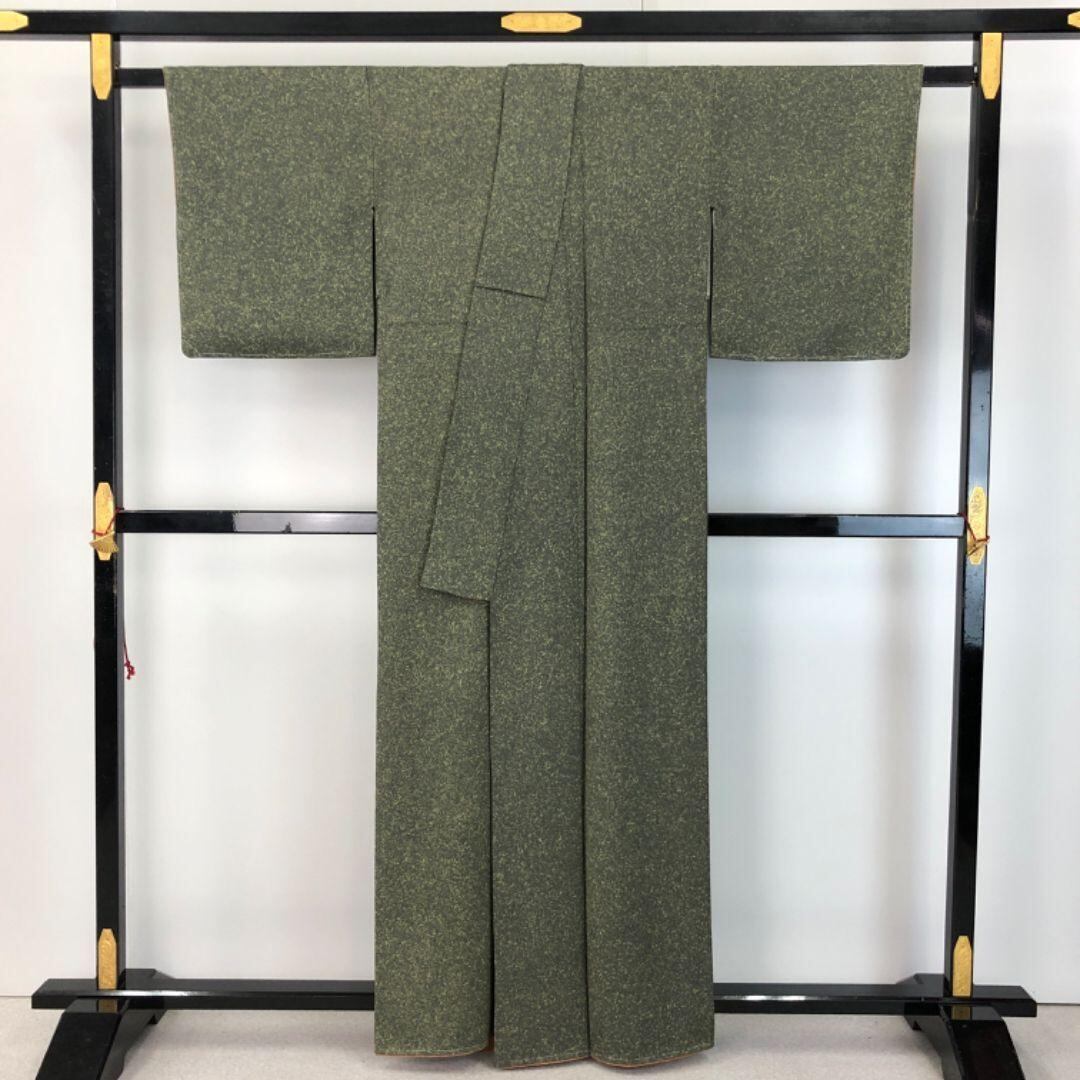 小紋 抽象模様 岩井茶色 縮緬 しつけ糸 K-5283 着物 きもの kimono 和服 和装 中古 リサイクル着物 【送料無料】