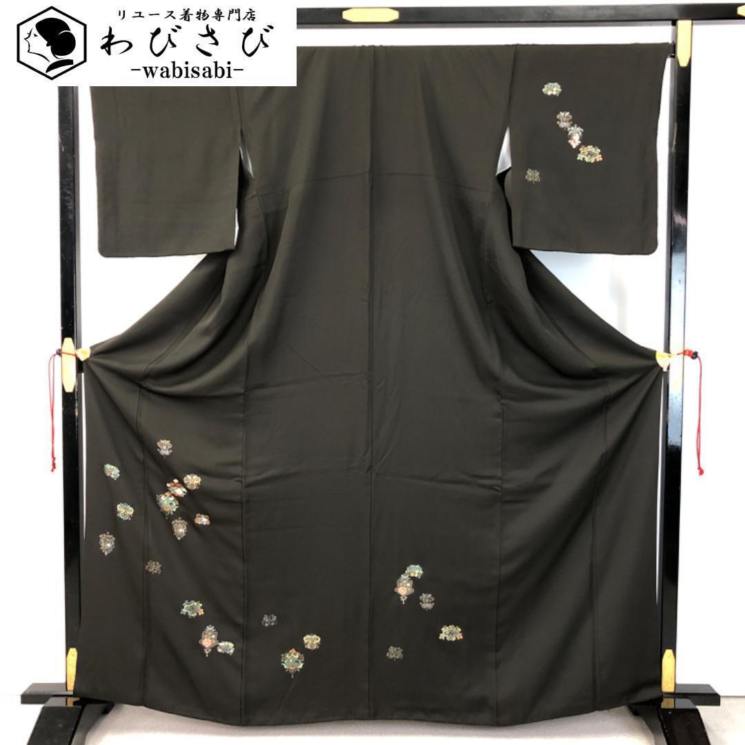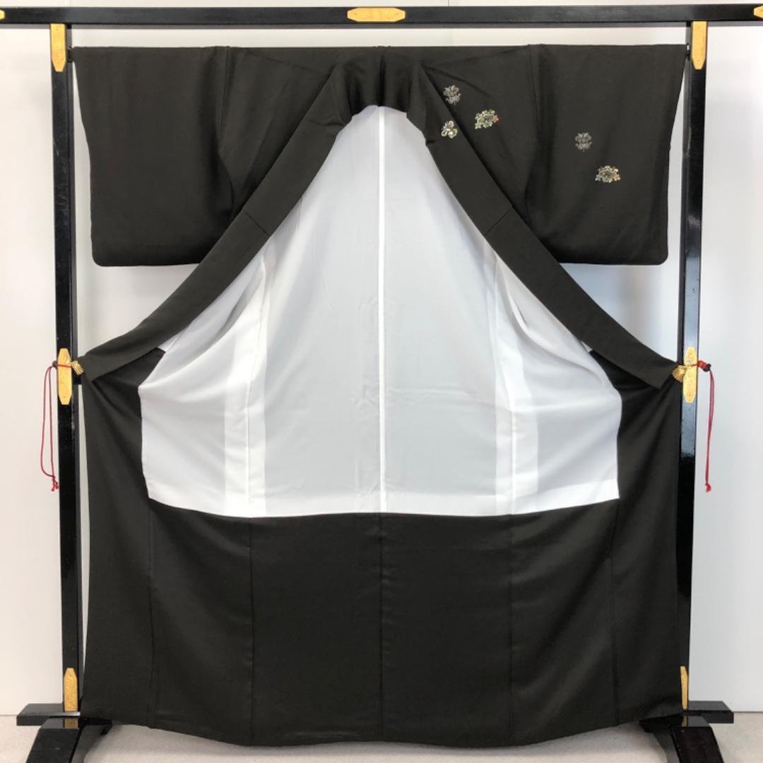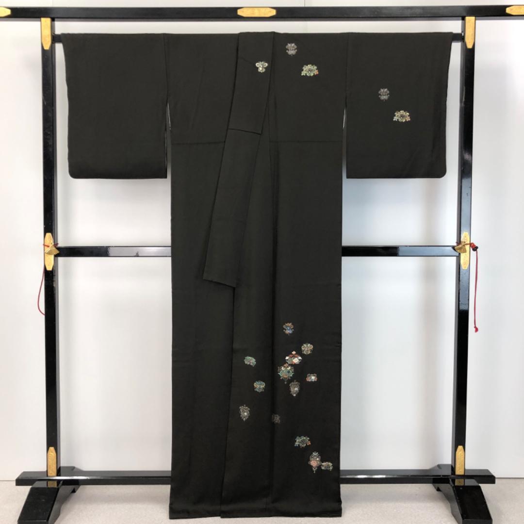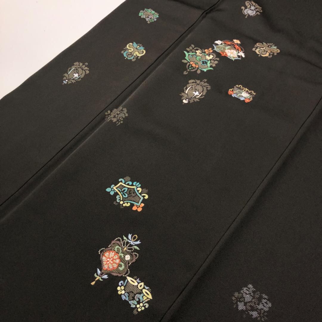 黒色のお色味に刺繍の花模様などがデザインされた素敵な柄裄のお品でございます。