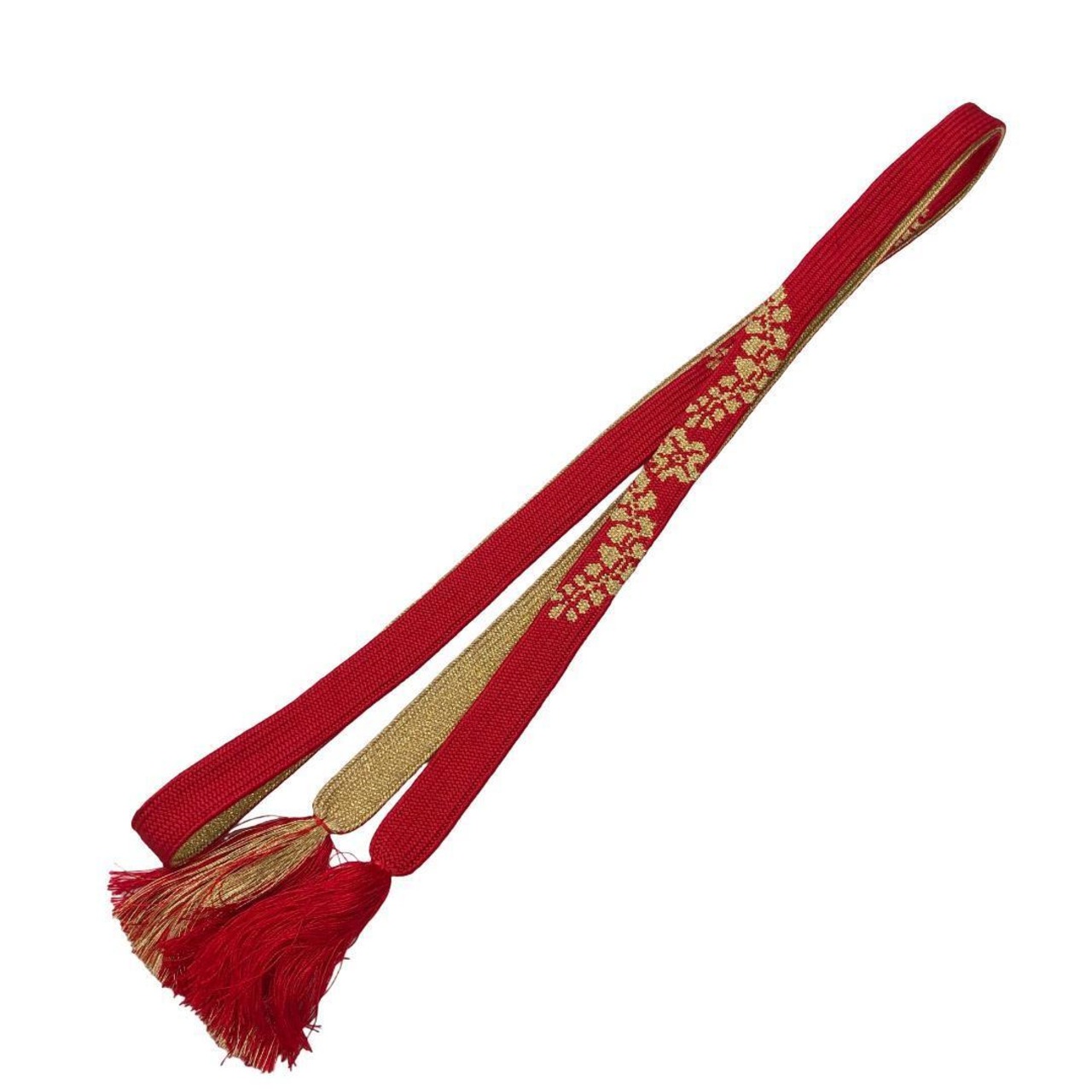 赤色のお色味に花模様がデザインされた素敵なお品でございます。