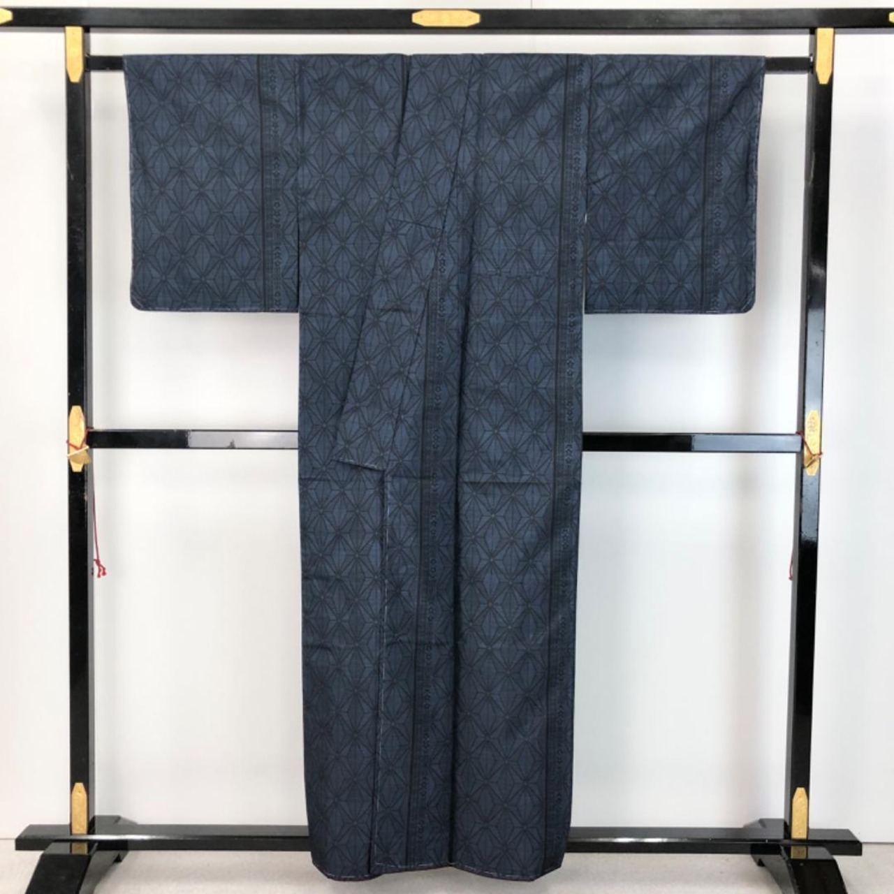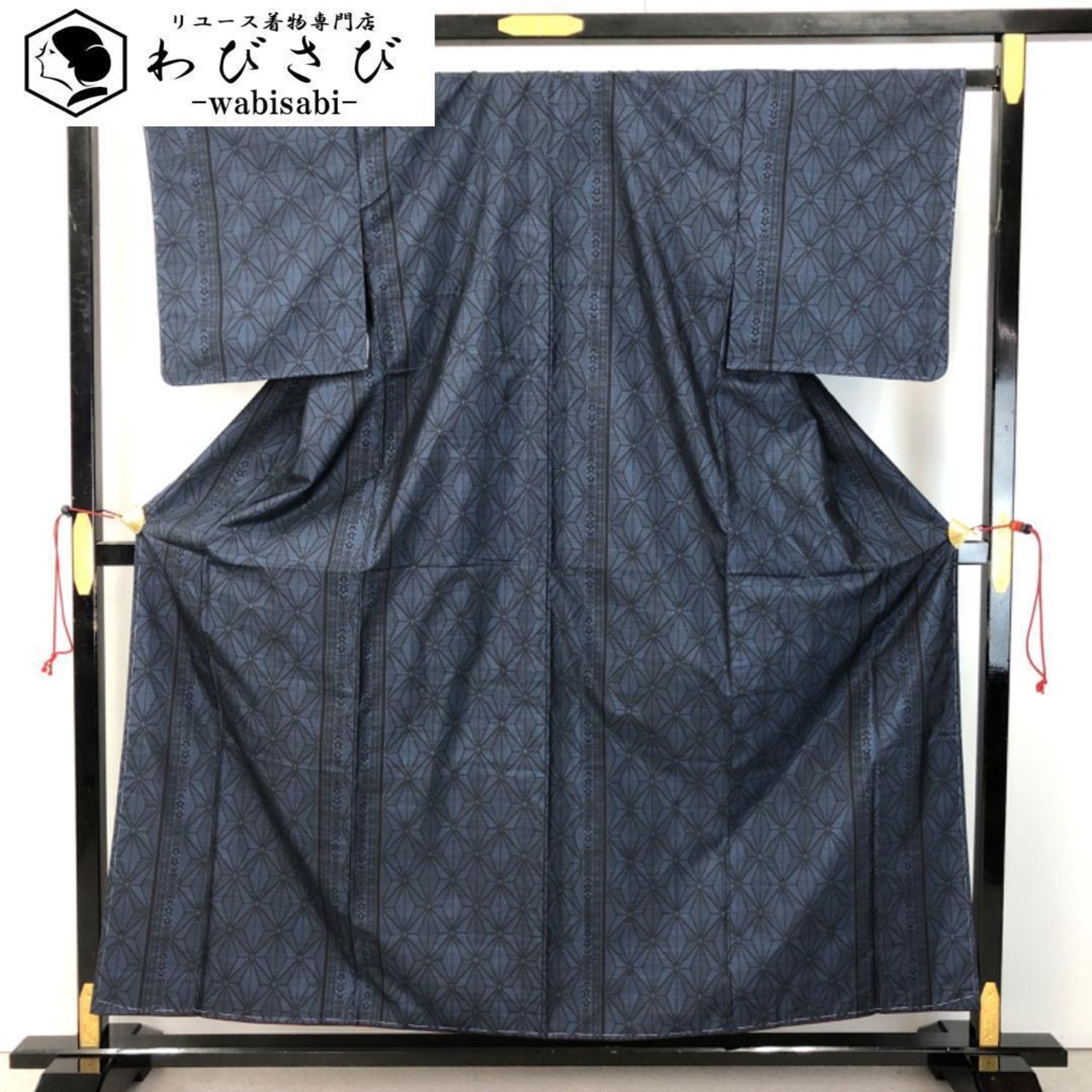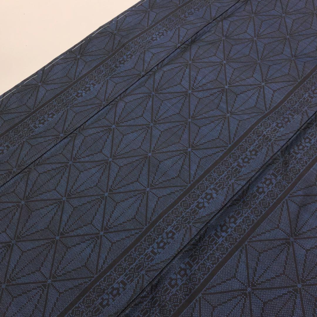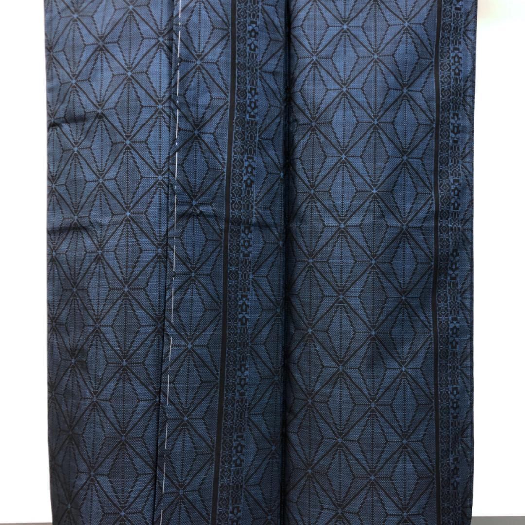 藍泥染のお色味に麻の葉模様がデザインされた素敵な柄裄のお品でございます。