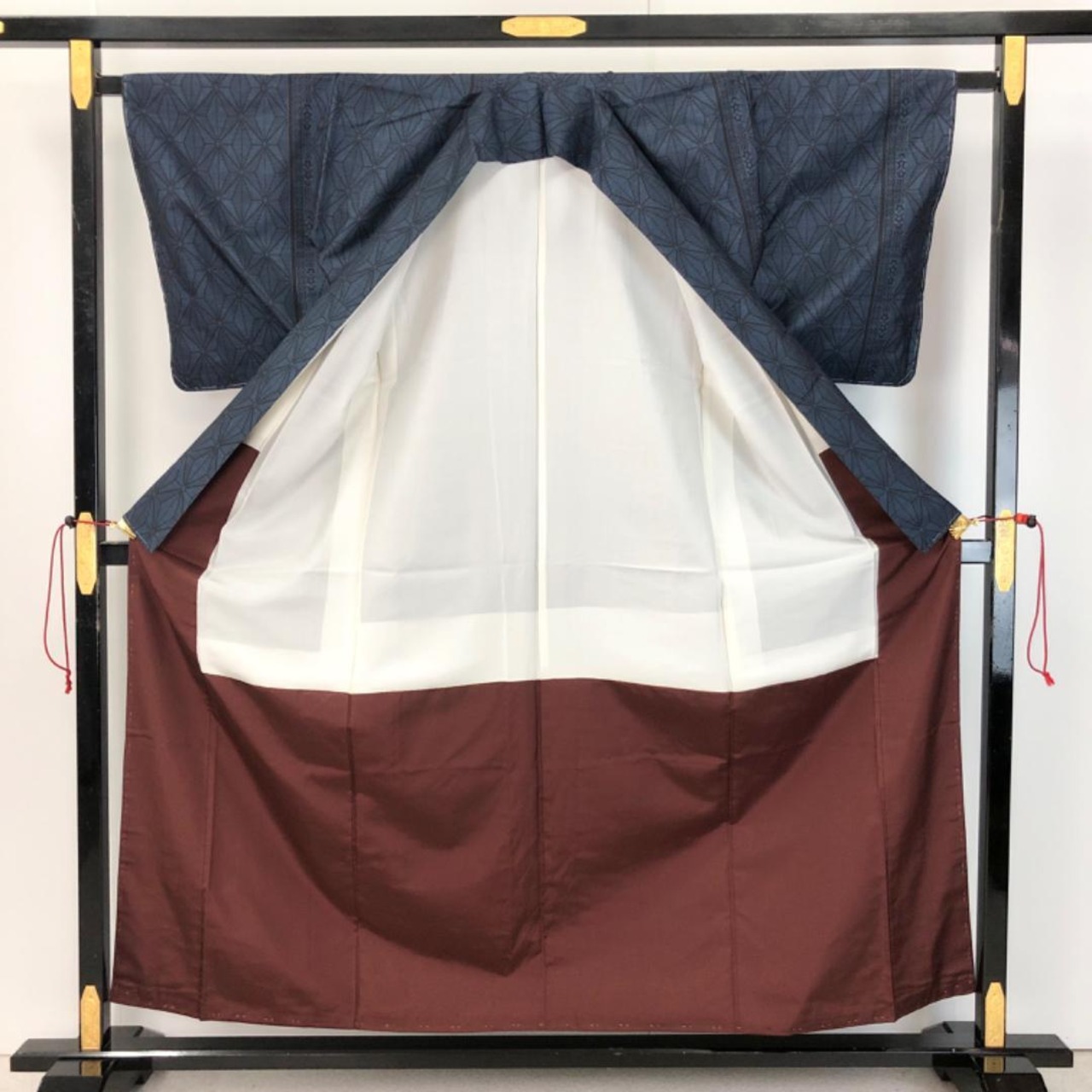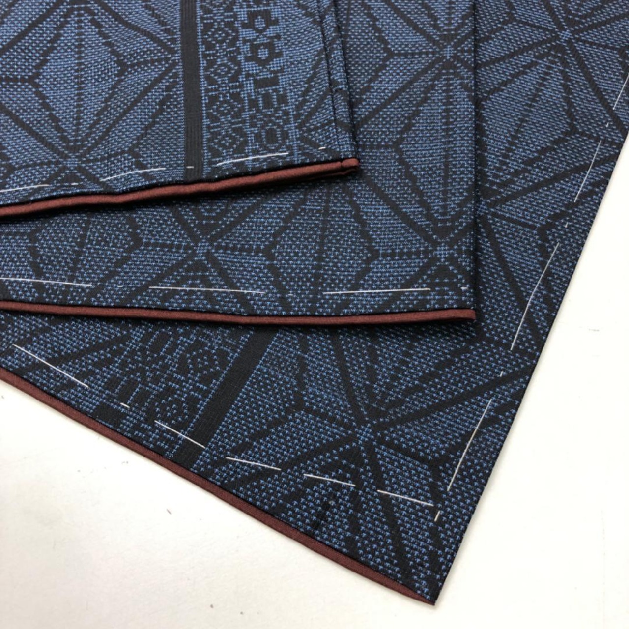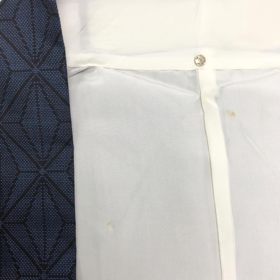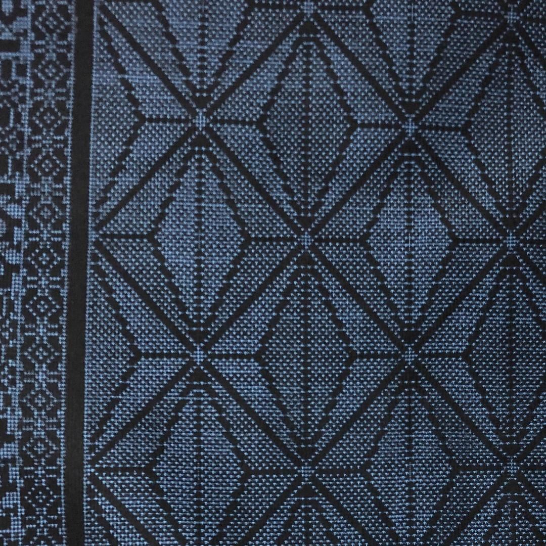 藍泥染のお色味に麻の葉模様がデザインされた素敵な柄裄のお品でございます。
