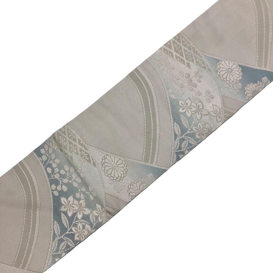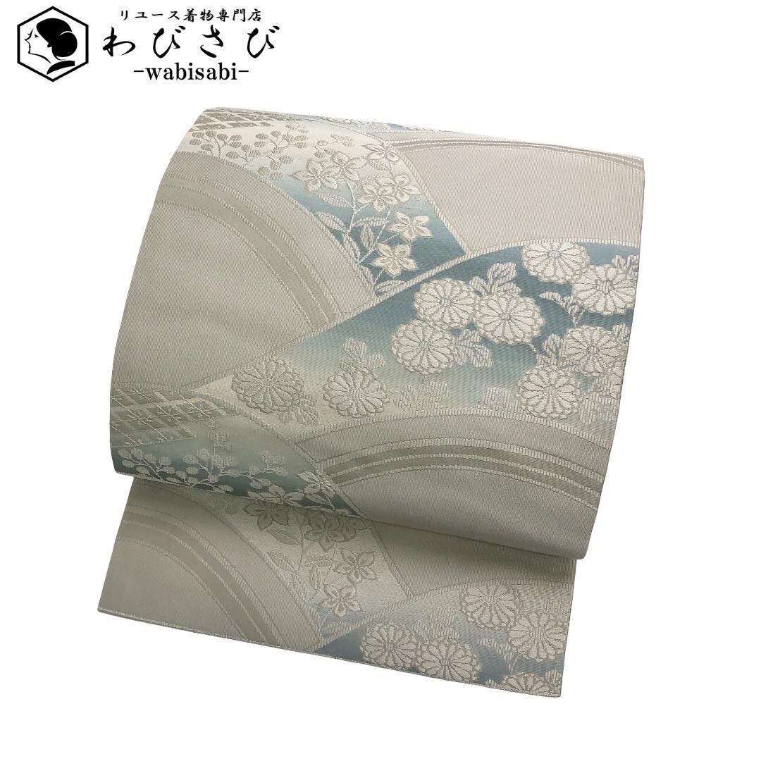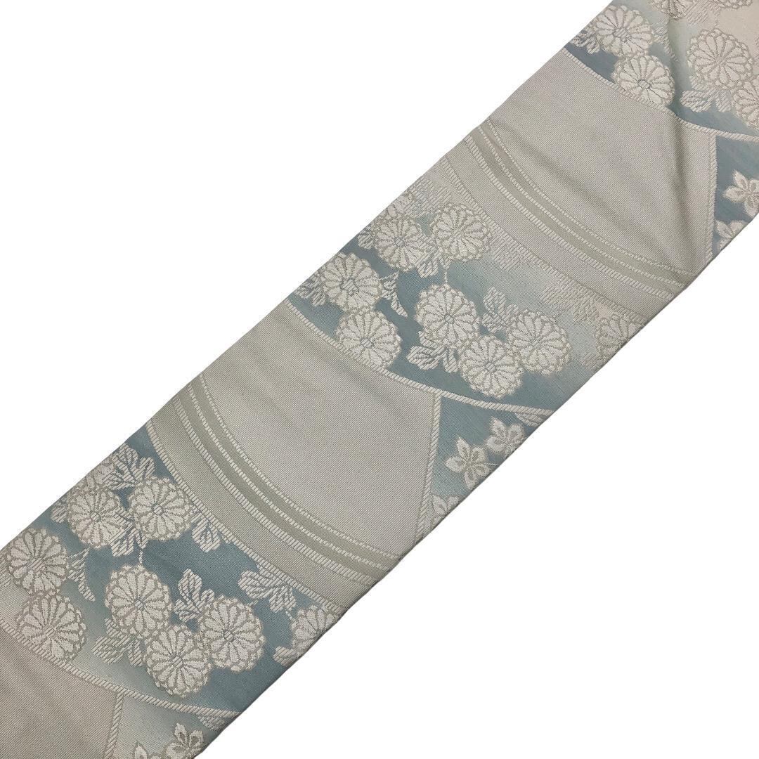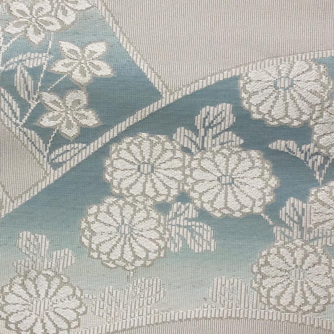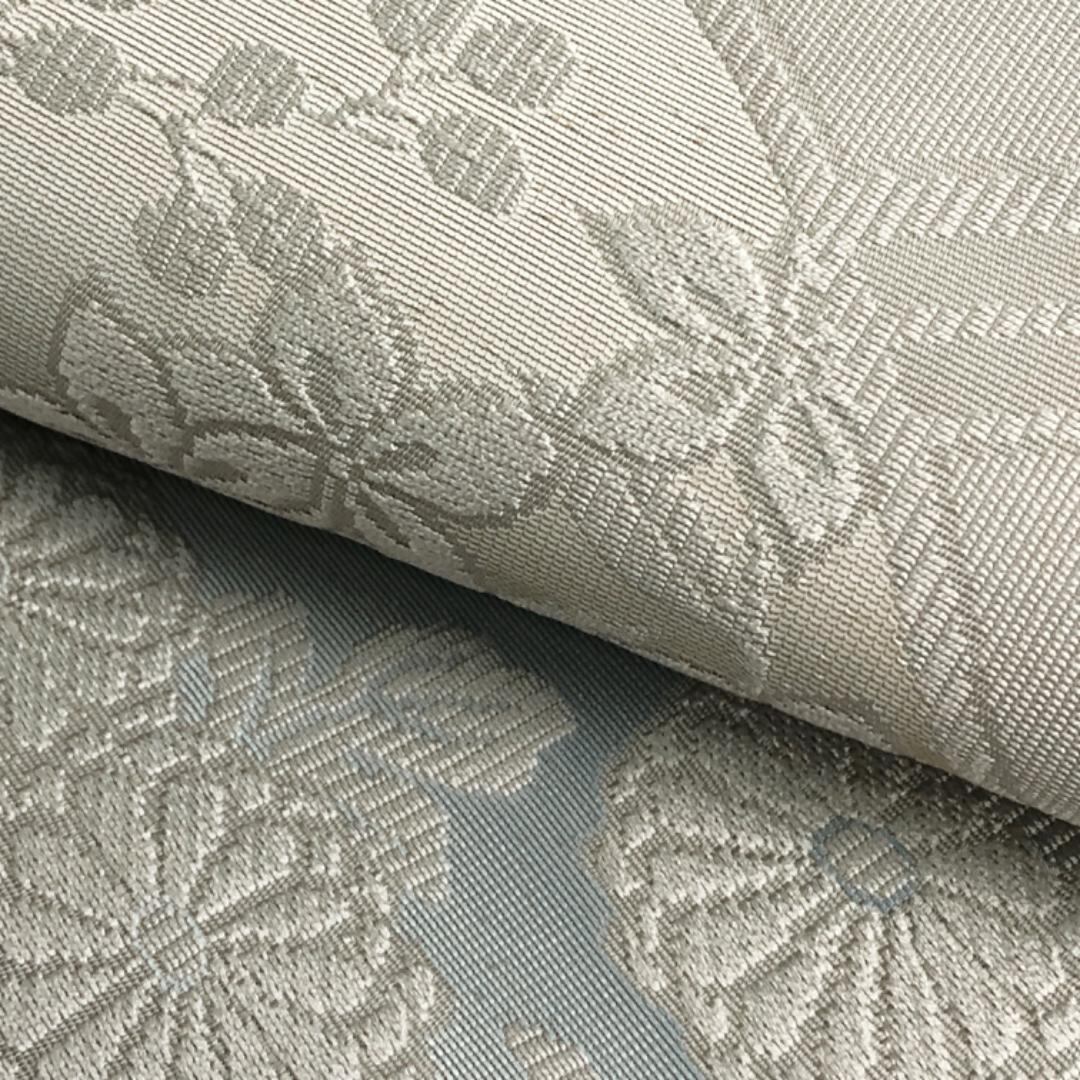 絹鼠色のお色味に花模様がデザインされた素敵な柄裄のお品でございます。