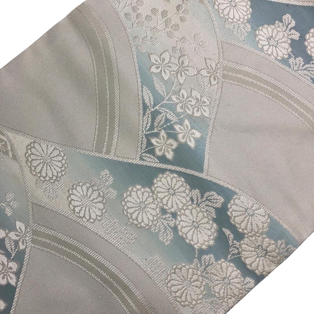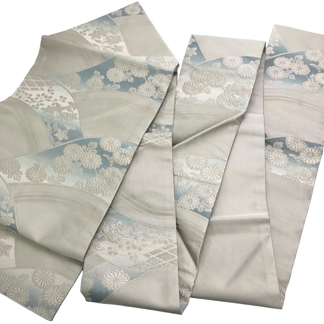 名古屋帯 御所つづれ 悦惺 花模様 絹鼠色 O-5480 着物 きもの kimono 和服 和装 中古 リサイクル着物 【送料無料】