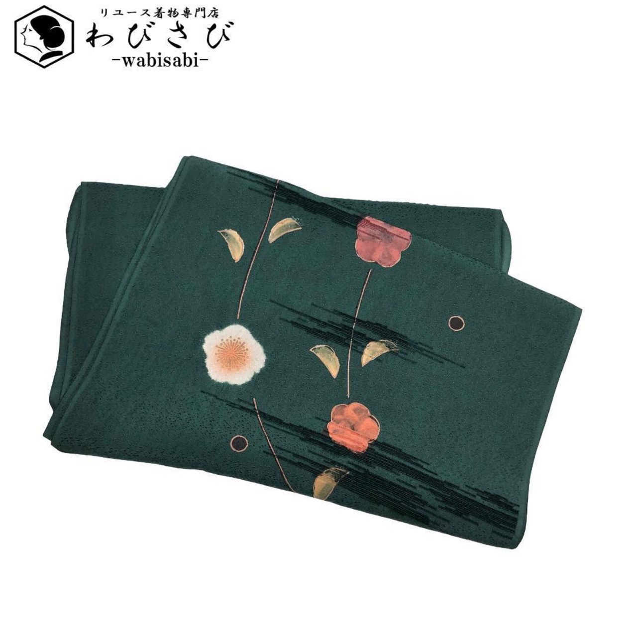 木賊色のお色味に手描きで花模様がデザインされた素敵なお品でございます。