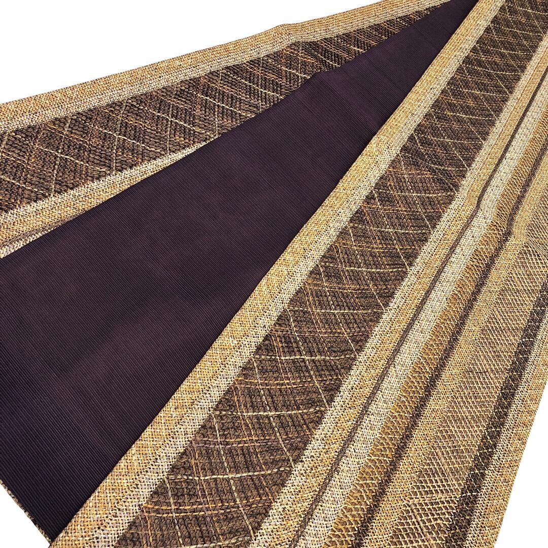 麦藁色の品のあるお色味に美しい縦柄織模様がデザインされた素敵な柄裄のお品でございます。