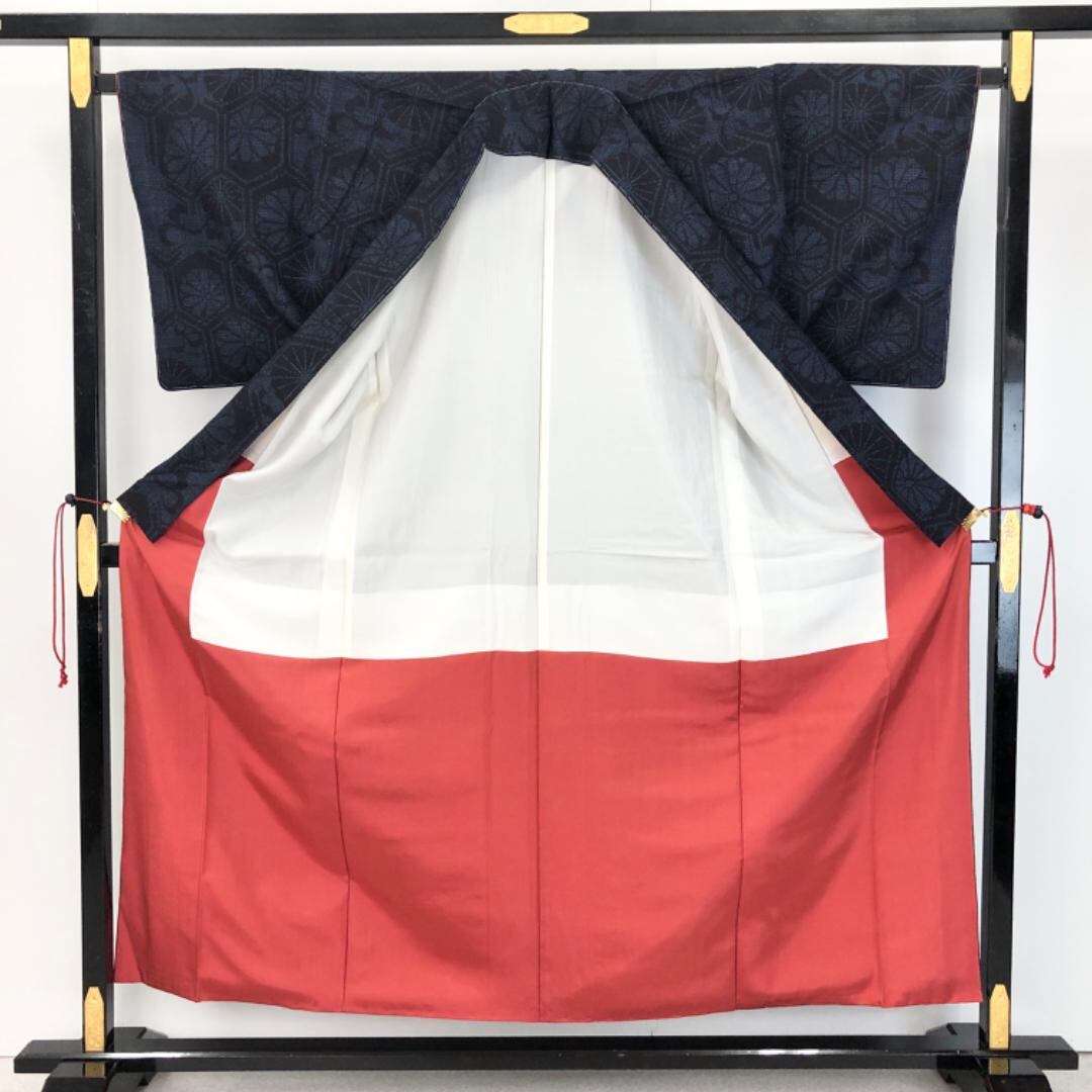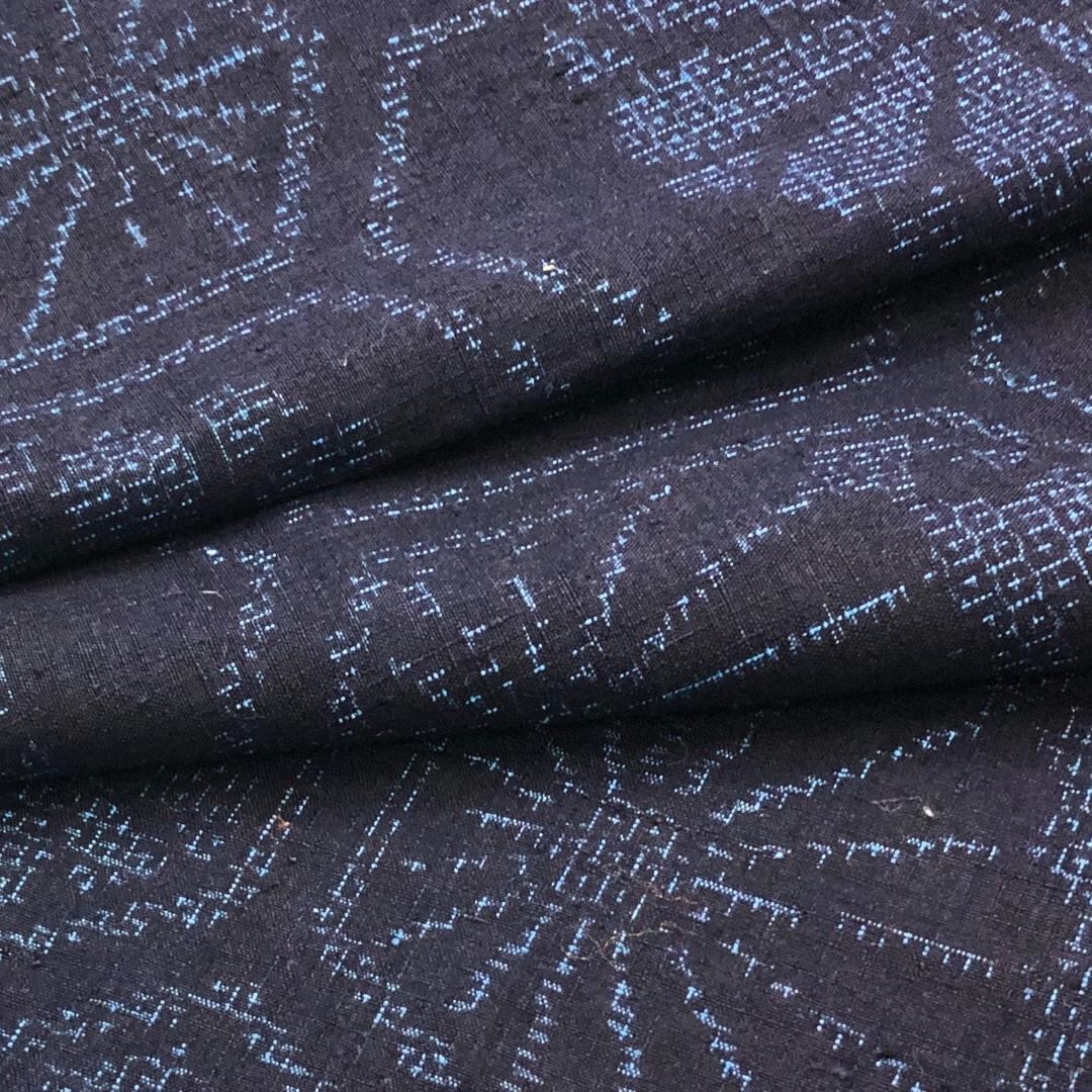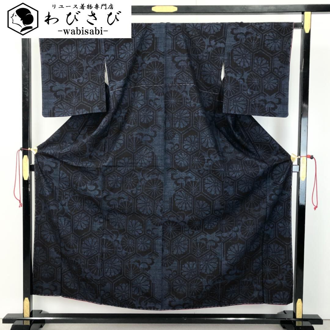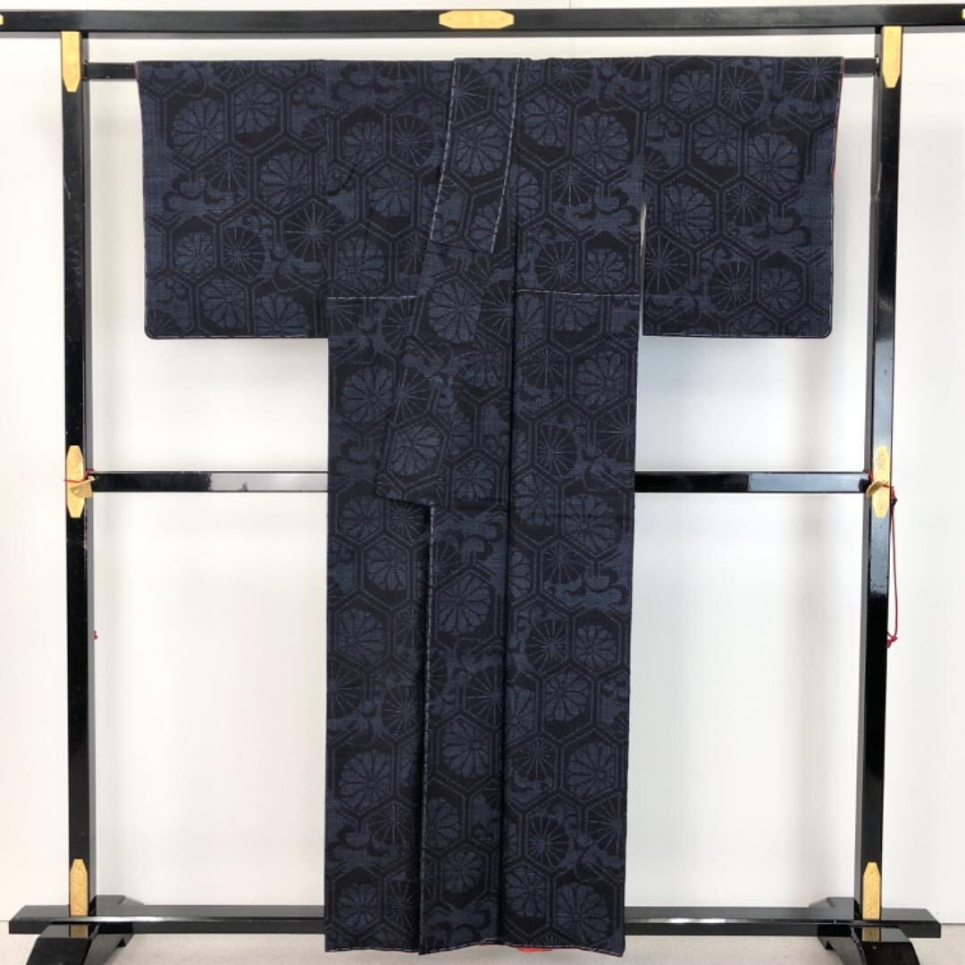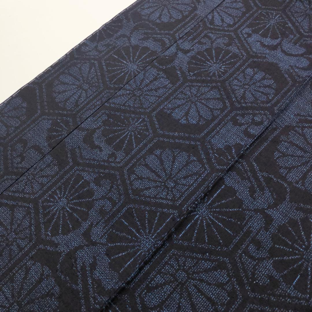 藍色のお色味に80亀甲の花亀甲模様がデザインされた雰囲気の良い素敵な柄裄のお品でございます。