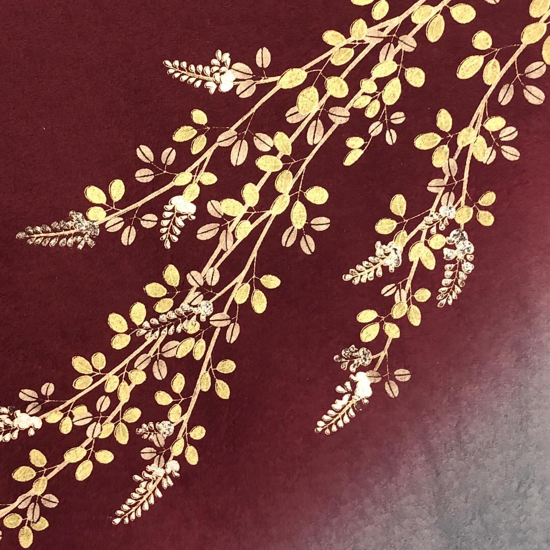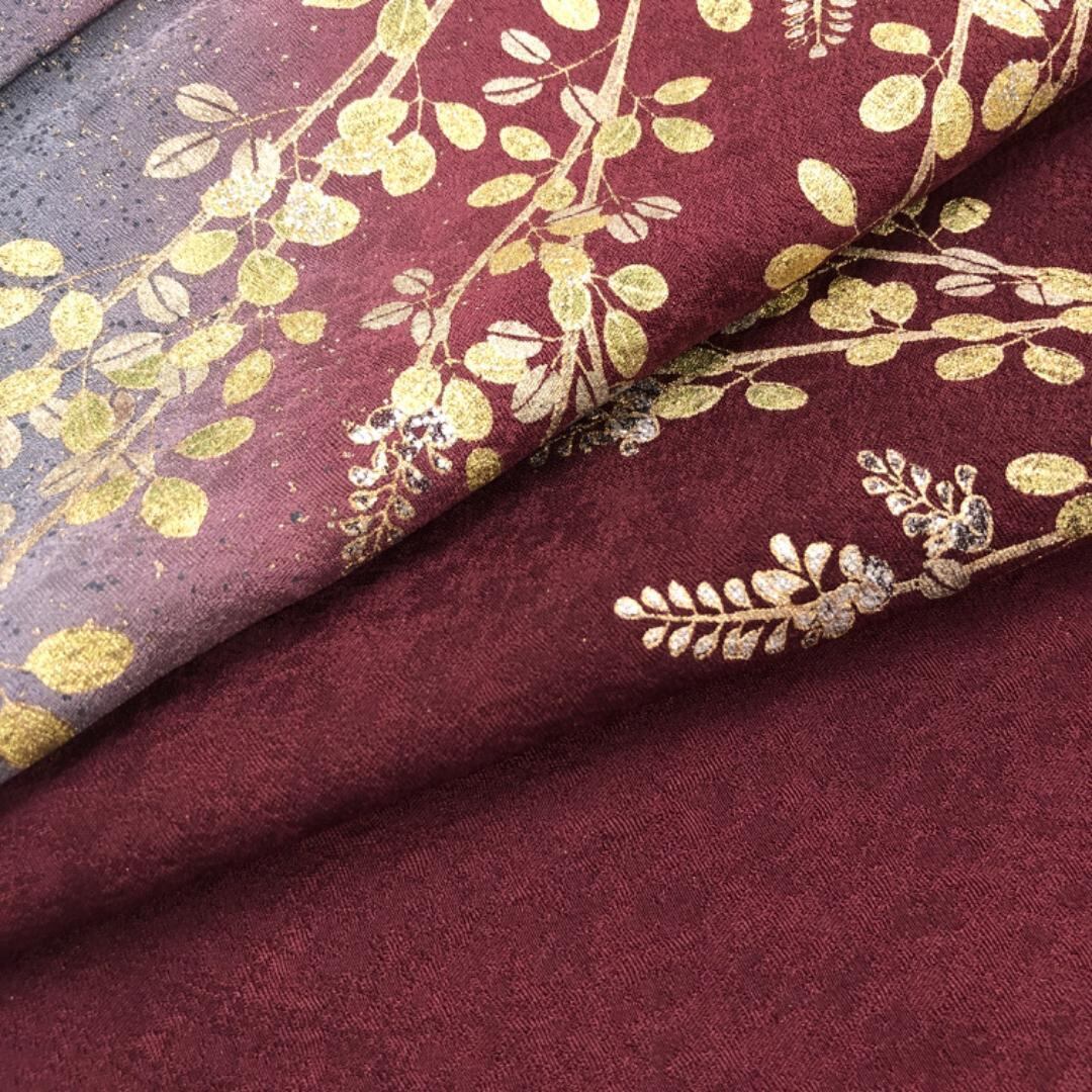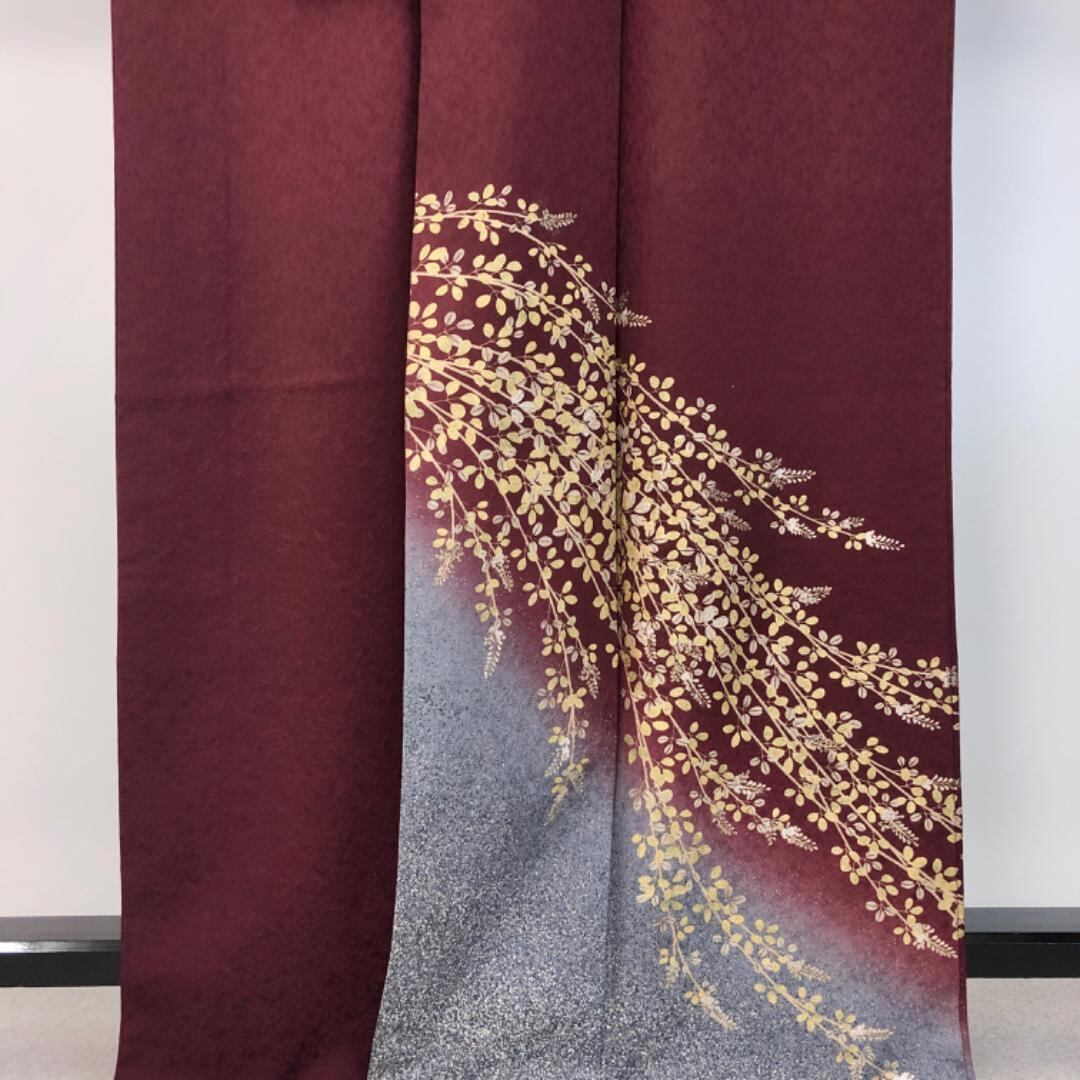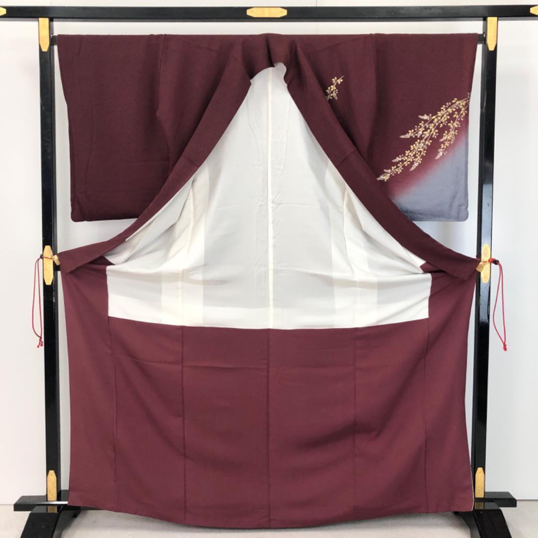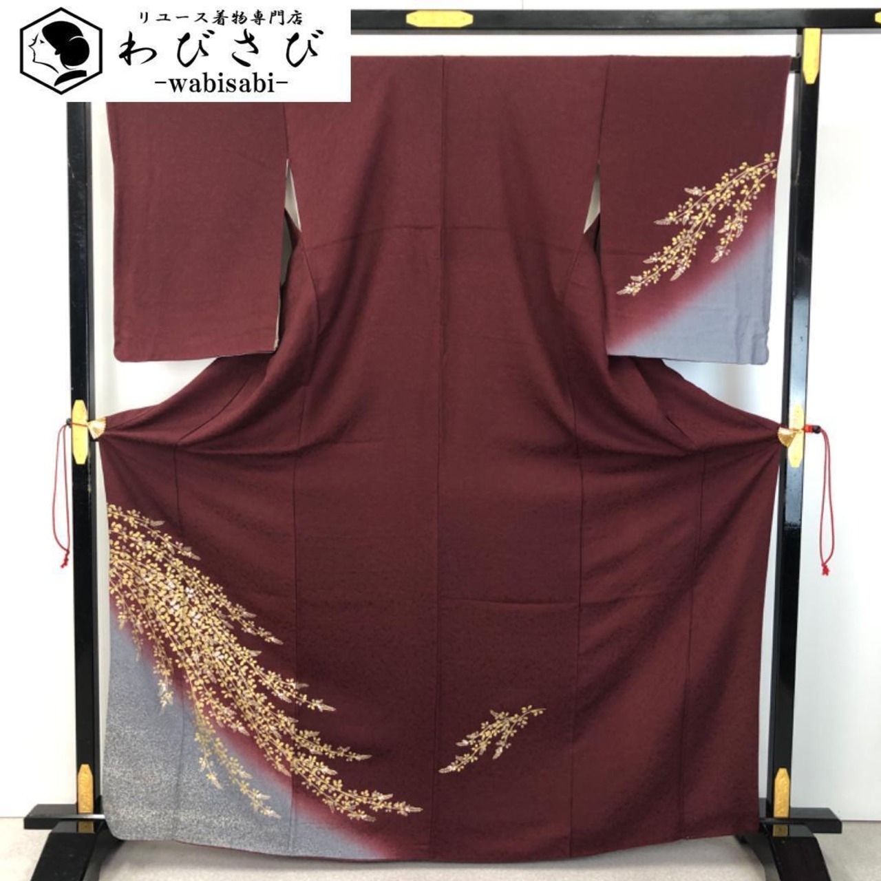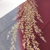 木蘭色ベースのお色味に暈し、金彩の萩の花模様がデザインされた雰囲気の良い素敵な柄裄のお品でございます。