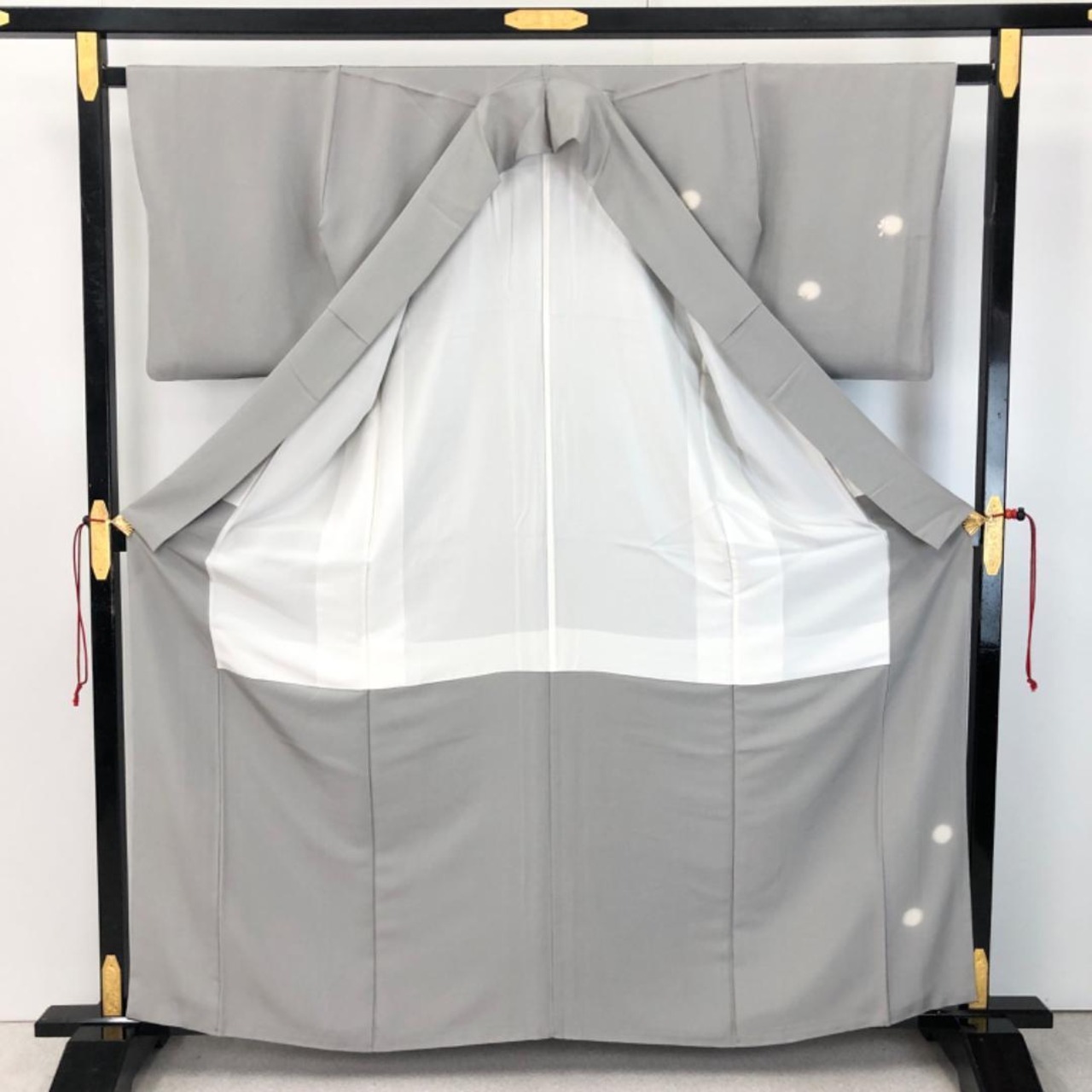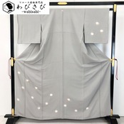 灰色の上品なお色味に蛍暈し、刺繍の源氏香、花模様の柄行がデザインされた素敵なお品でございます。