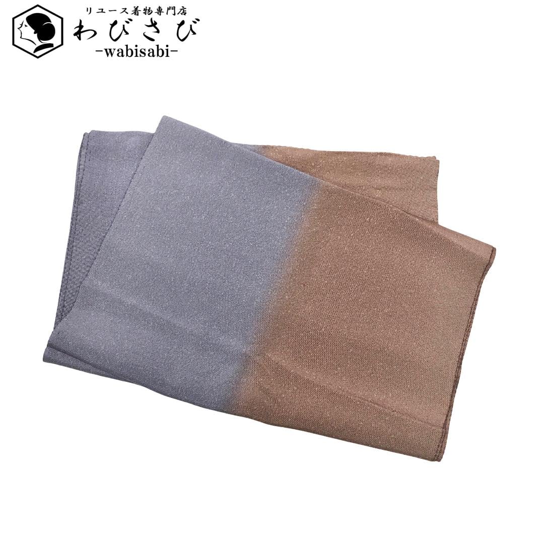 灰紫色ベースの染分けのお色味に縮緬の素敵なお品でございます。