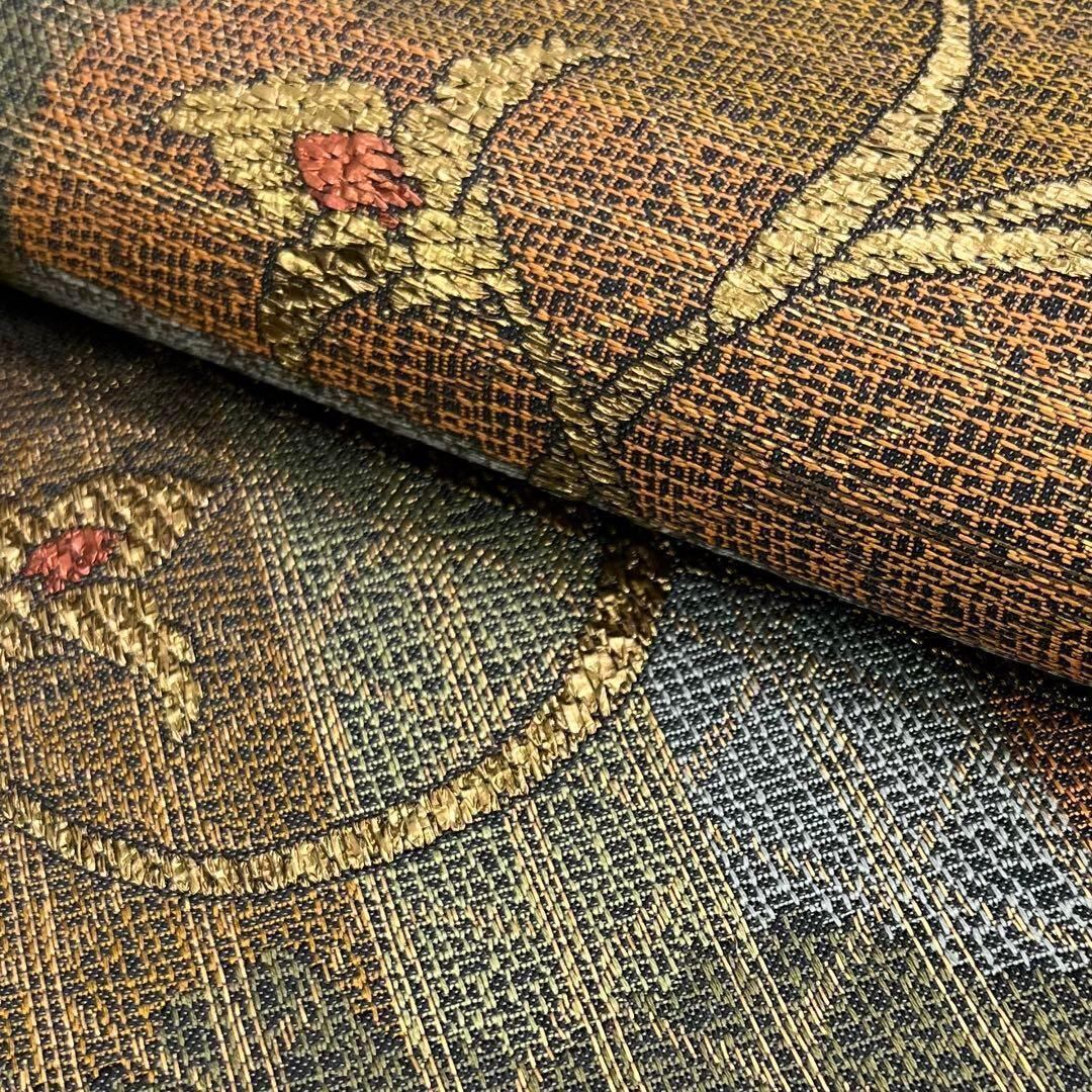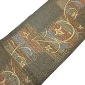 岩井茶色の落ち着いたお色味に金糸が使われた上品な花唐草の柄裄がデザインされた素敵なお品でございます。