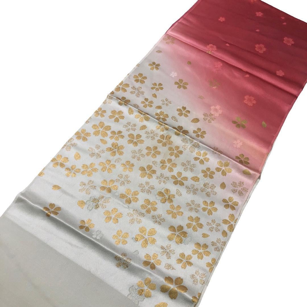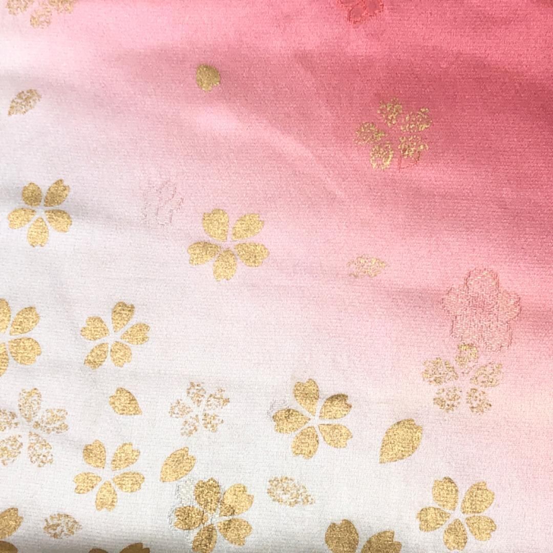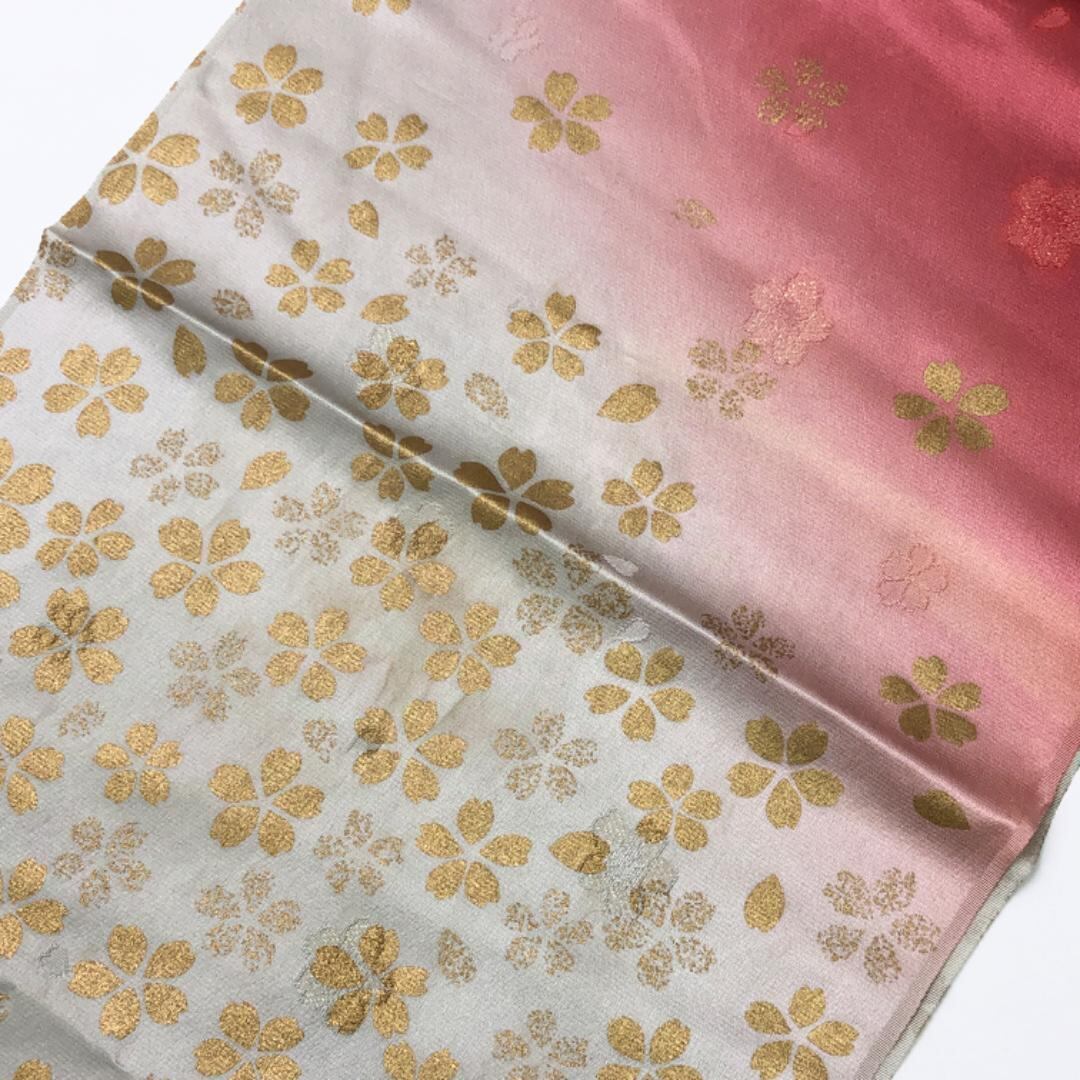 薄蝋色ベースの染分けのお色味に桜の花がデザインされた素敵なお品でございます。