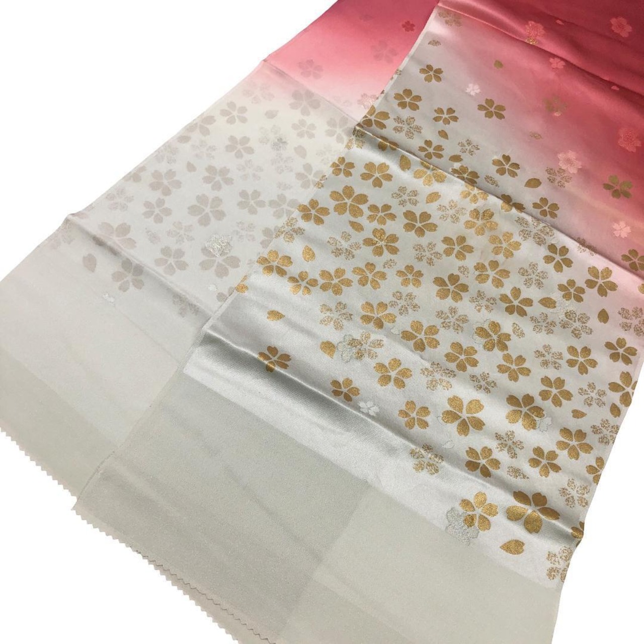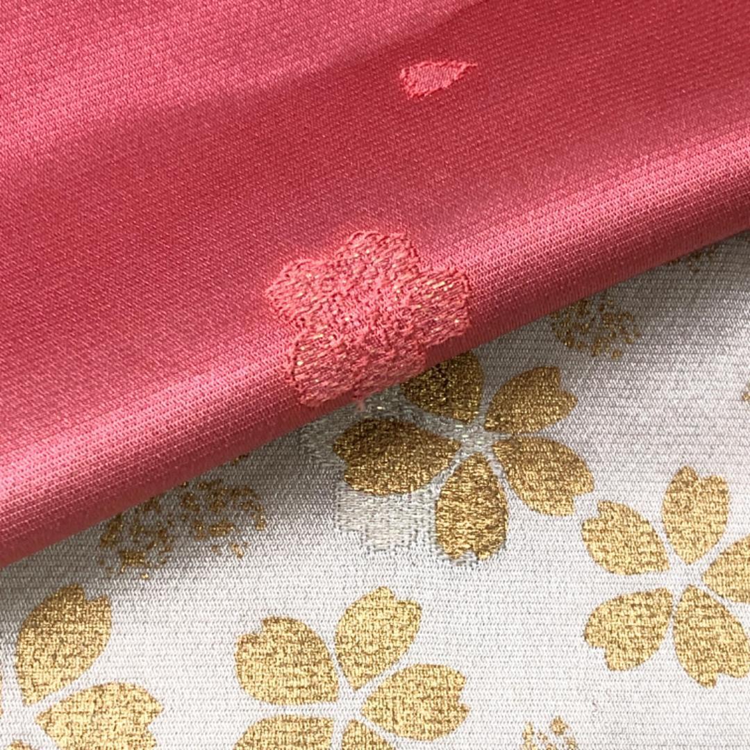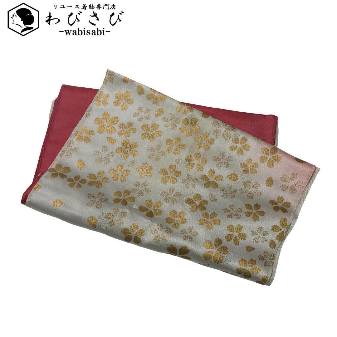 薄蝋色ベースの染分けのお色味に桜の花がデザインされた素敵なお品でございます。
