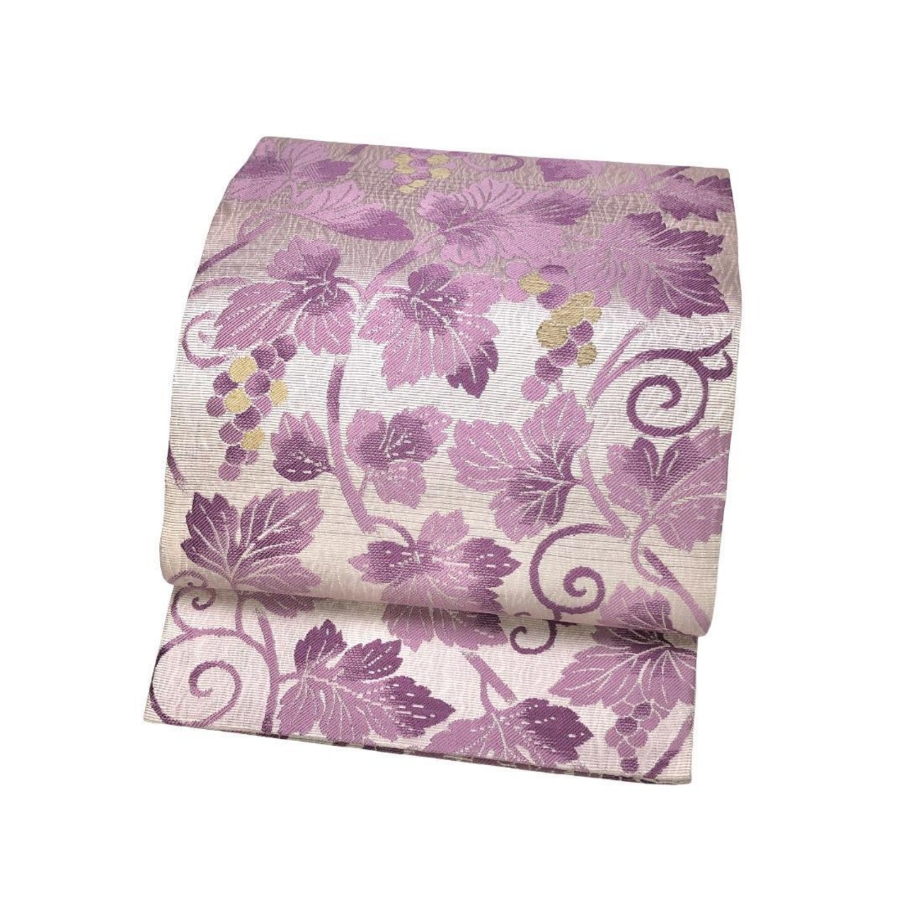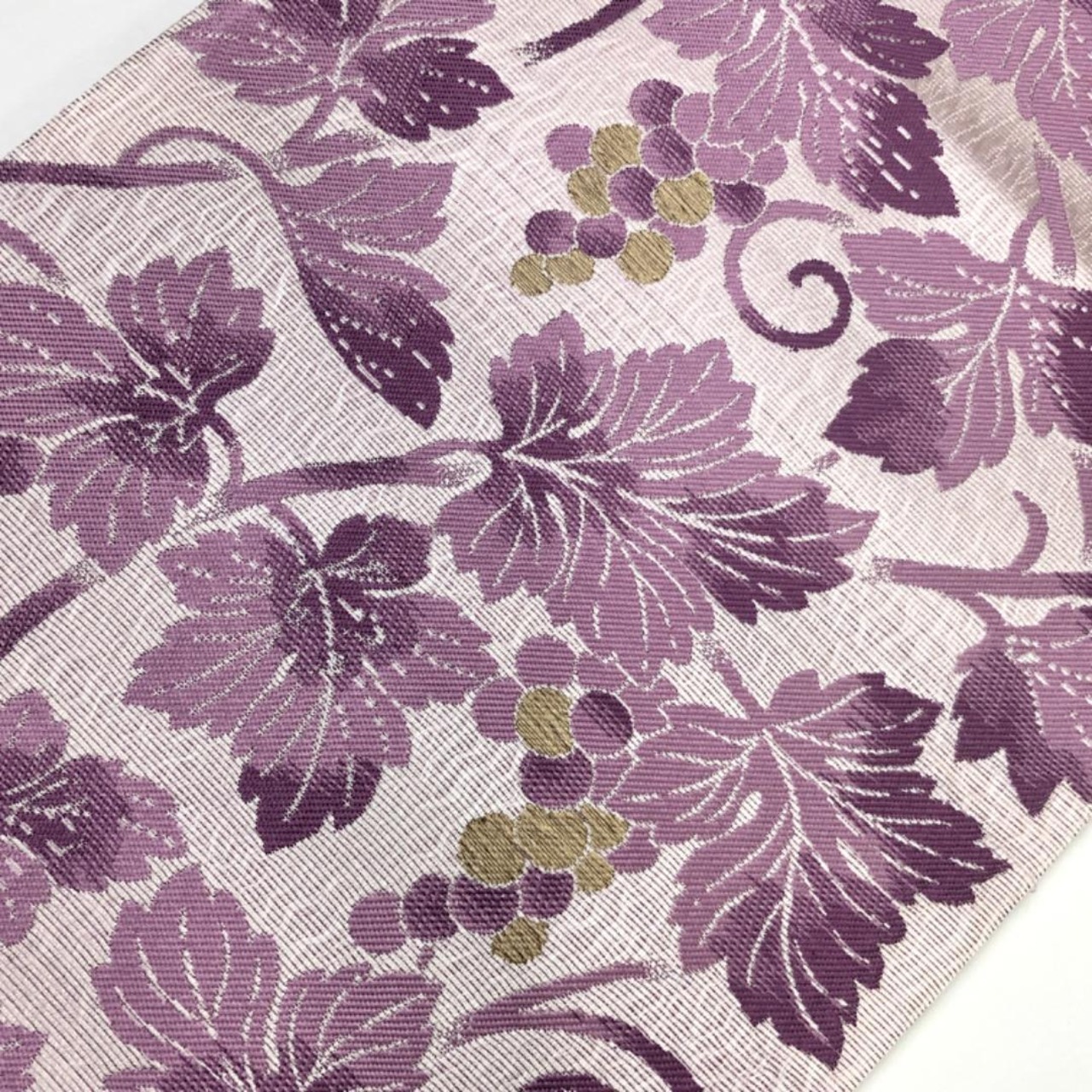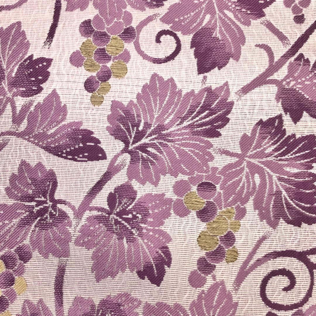 白梅鼠色のお色味に葡萄唐草がデザインされた雰囲気の良い素敵な柄裄のお品でございます。