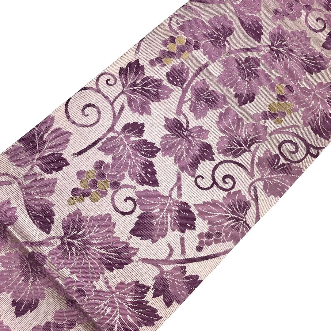 袋帯 黄金ムガ蚕 葡萄唐草 白梅鼠色 ガード加工 O-5497 着物 きもの kimono 和服 和装 中古 リサイクル着物 【送料無料】