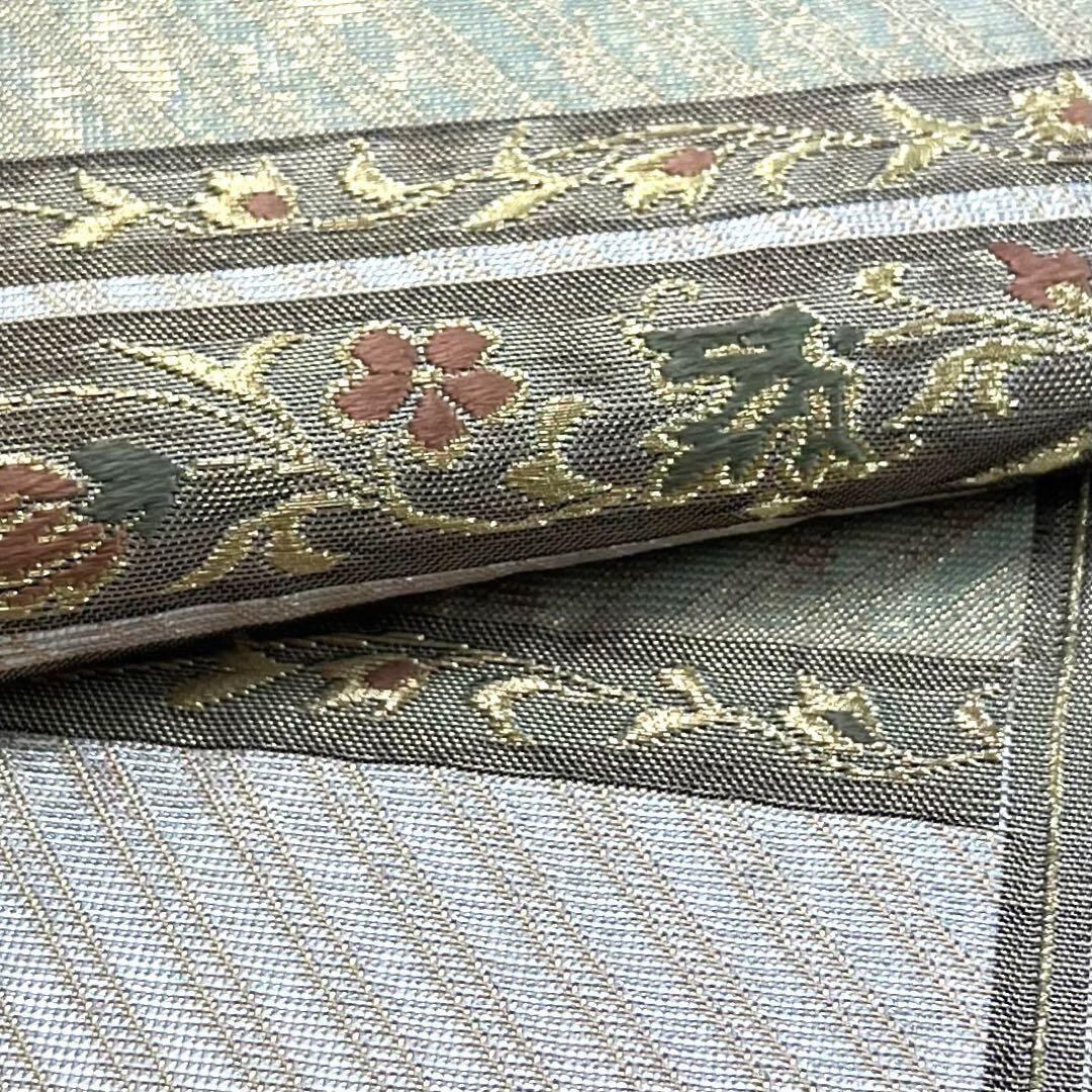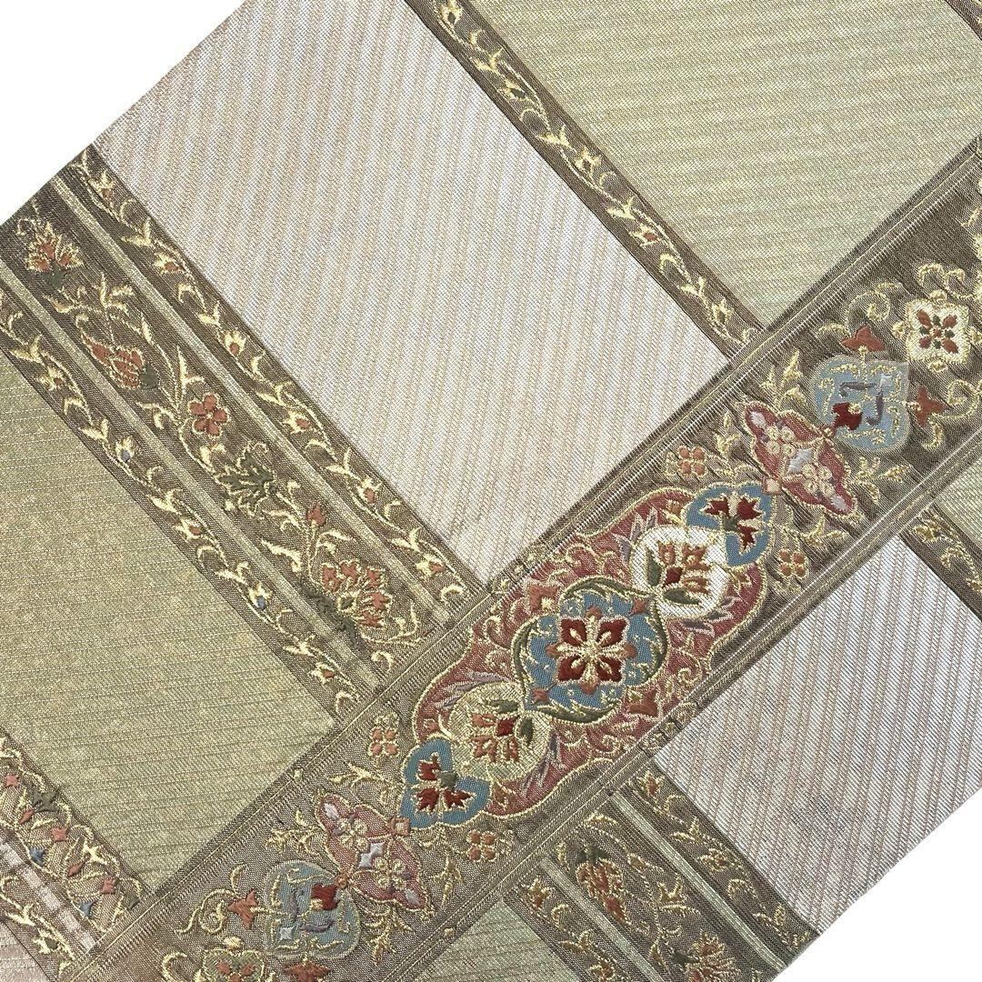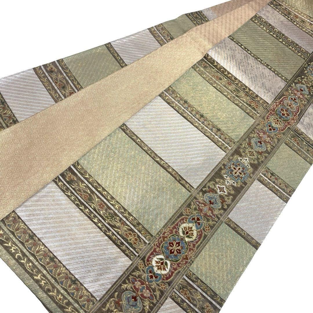袋帯 縦横美しい華柄模様 斜め模様 金銀糸 O-4523 着物 きもの kimono 和服 和装 中古 リサイクル着物 【送料無料】