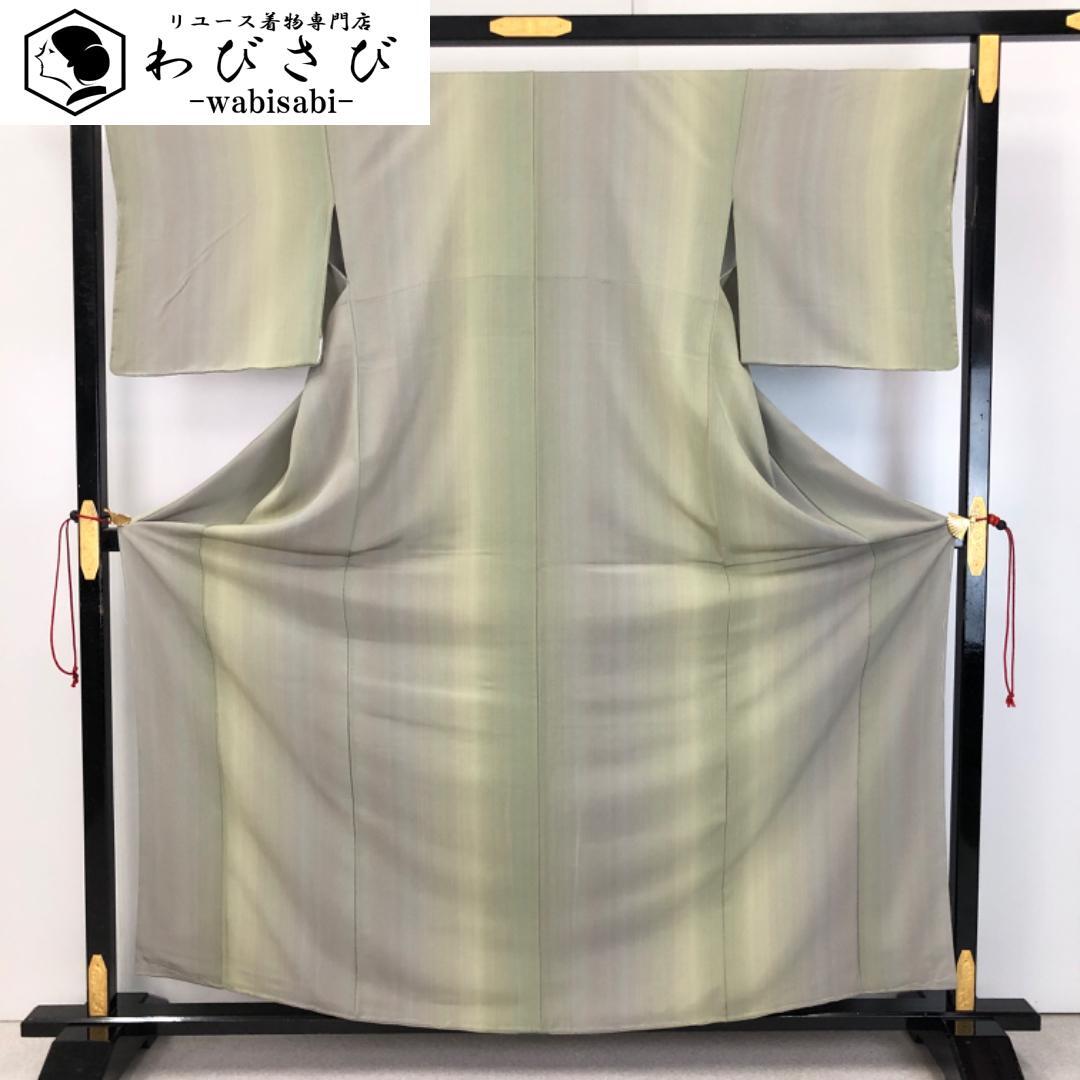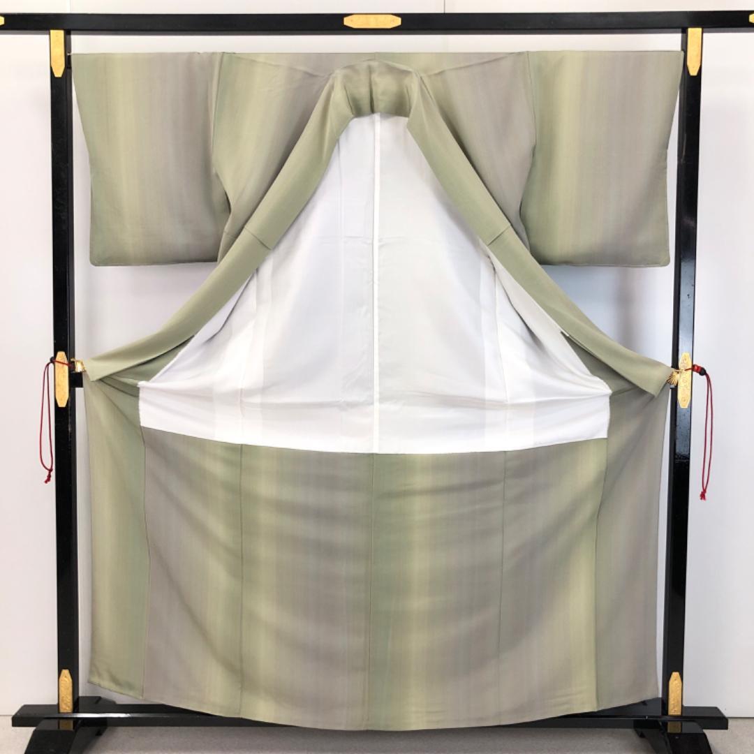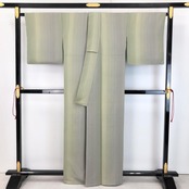 裏柳色ベースの綺麗な色彩、縦縞模様がデザインされた素敵な柄裄のお品でございます。