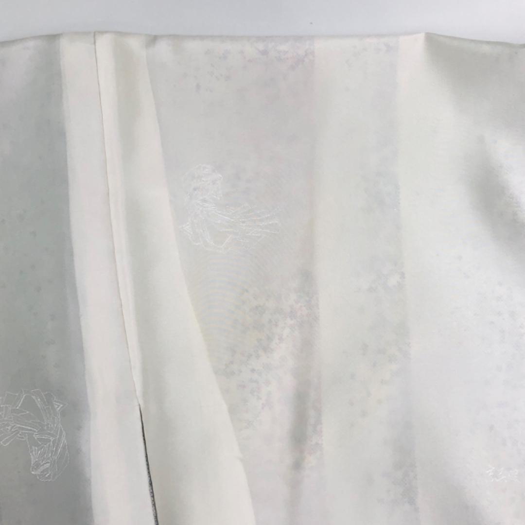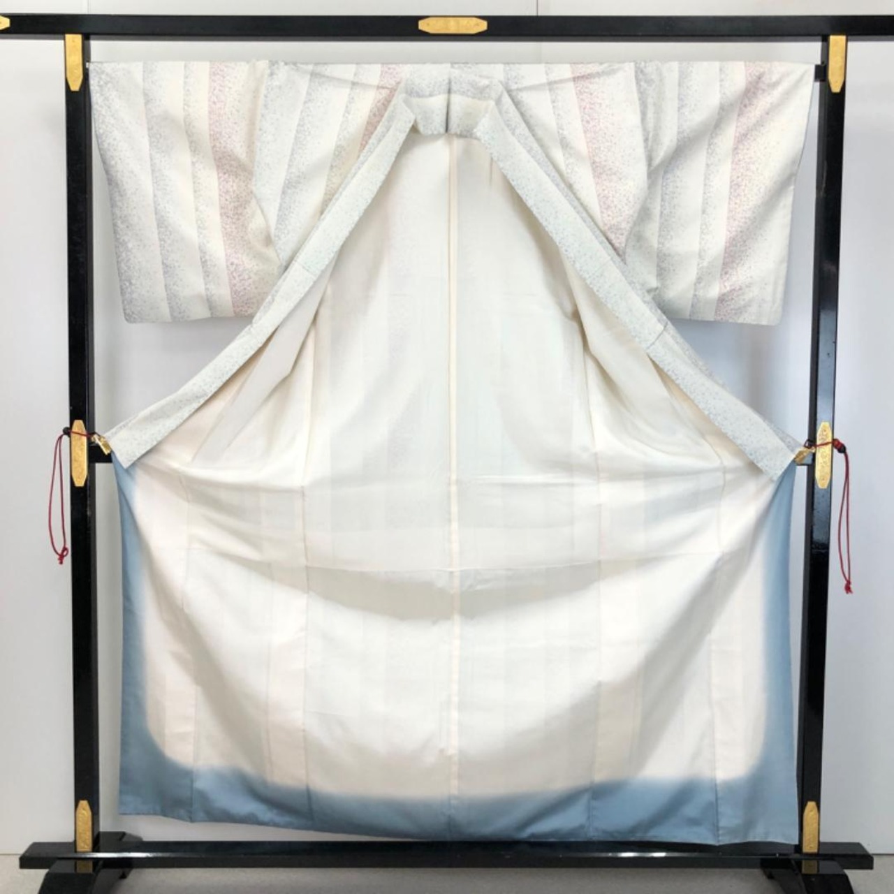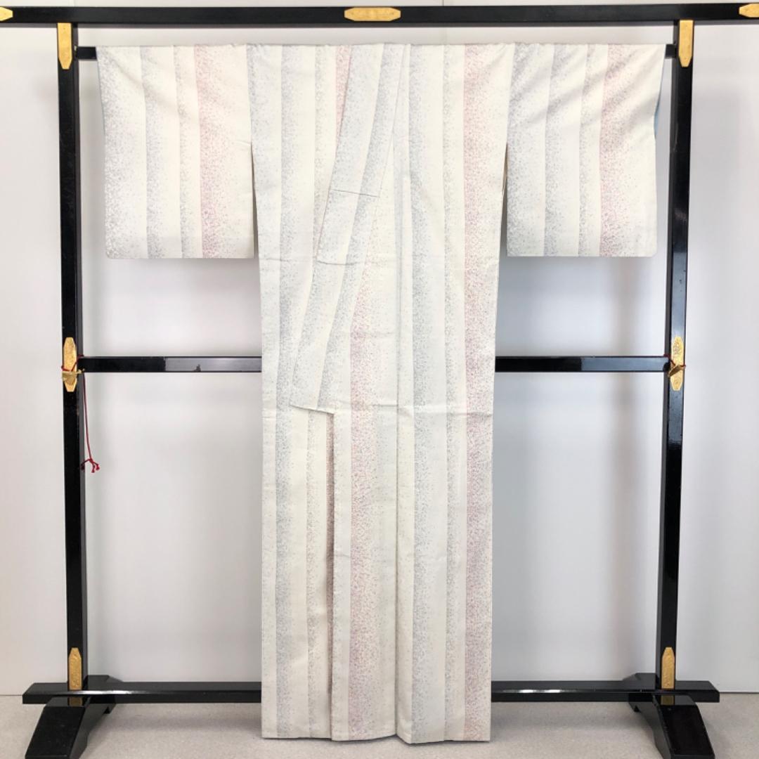 卯の花色の上品なお色味に色彩の美しい縦縞模様がデザインされた素敵な柄裄のお品でございます。