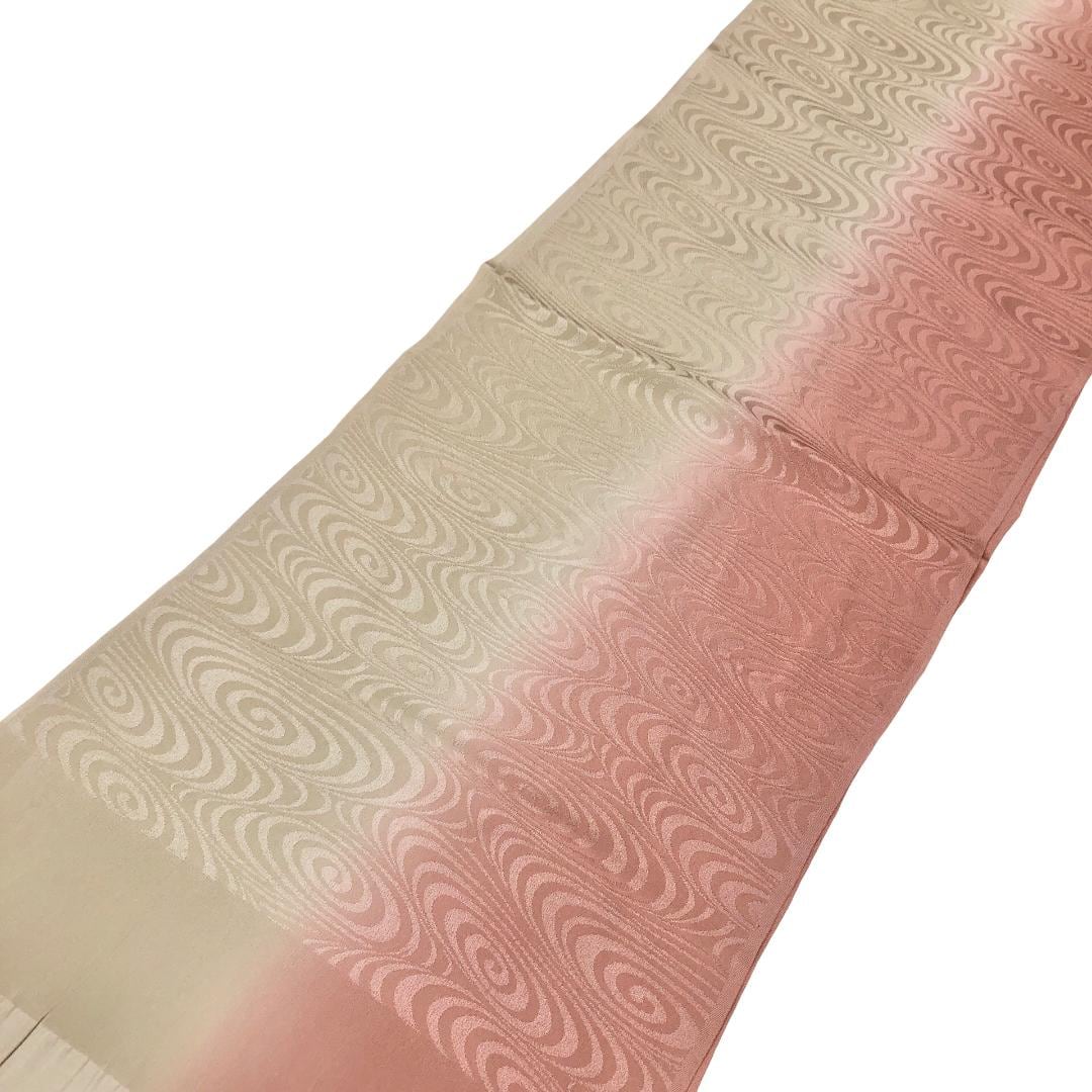 水柿色ベースの染分けのお色味に観世水がデザインされた素敵なお品でございます。