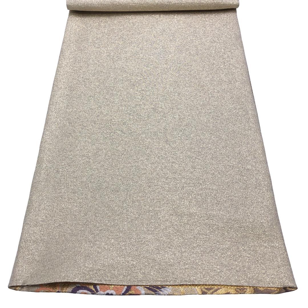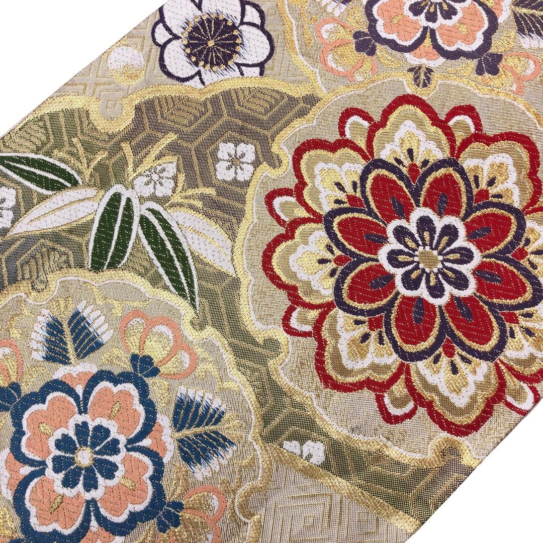 袋帯 雪輪 美しい華柄模様 金糸 生成色 振袖 O-5511 着物 きもの kimono 和服 和装 中古 リサイクル着物 【送料無料】