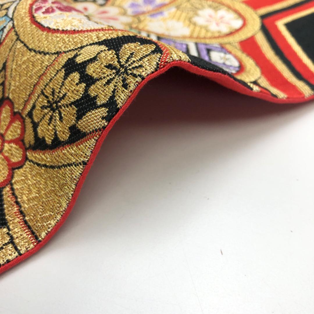 黒色のお色味に亀甲、ねじり梅、花模様がデザインされた素敵な柄裄のお品でございます。