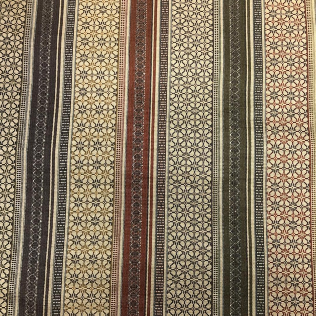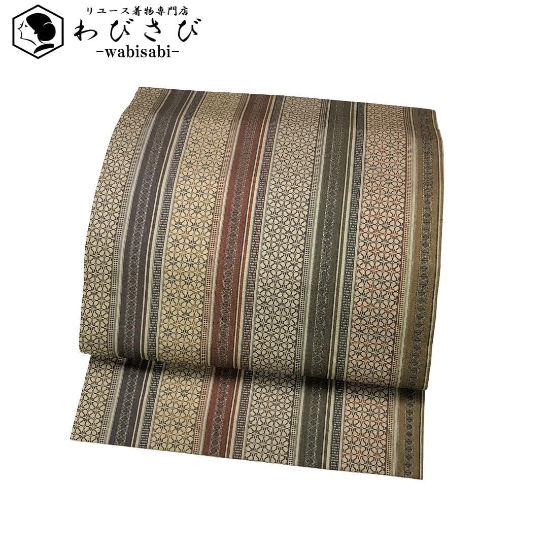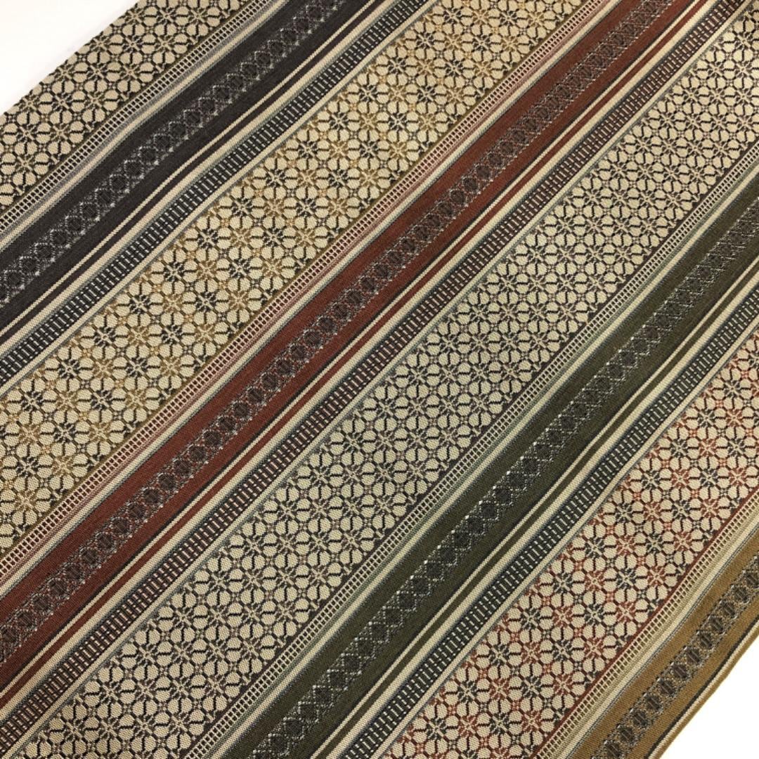 絹鼠色の落ち着きのあるお色味、縦縞に花柄模様がデザインされた素敵な柄裄のお品でございます。